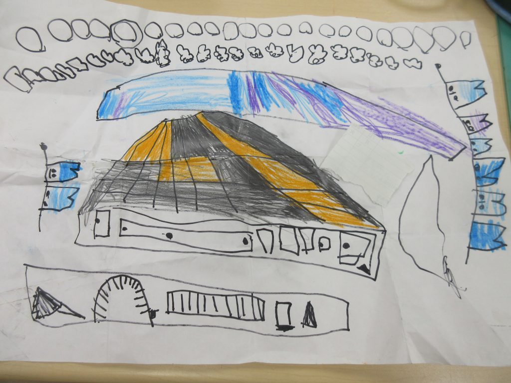 年長さんが、ロッカーに大切にしまってあった絵を見せてくれました。「保育園、描いたんだあ😊」 東春近保育園、素敵だね