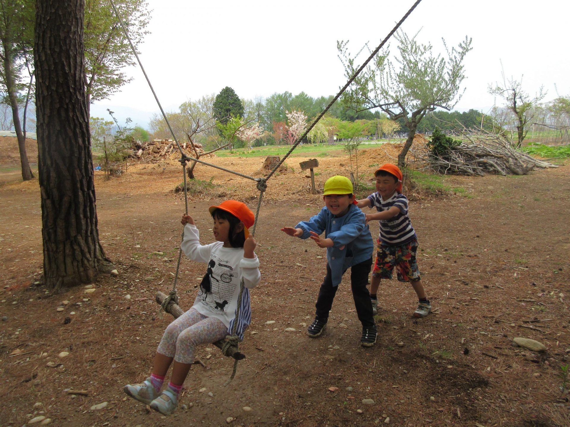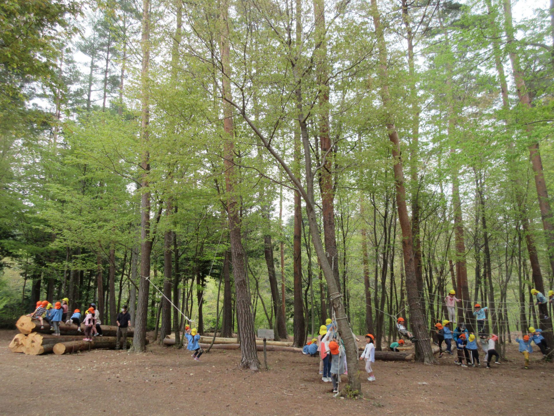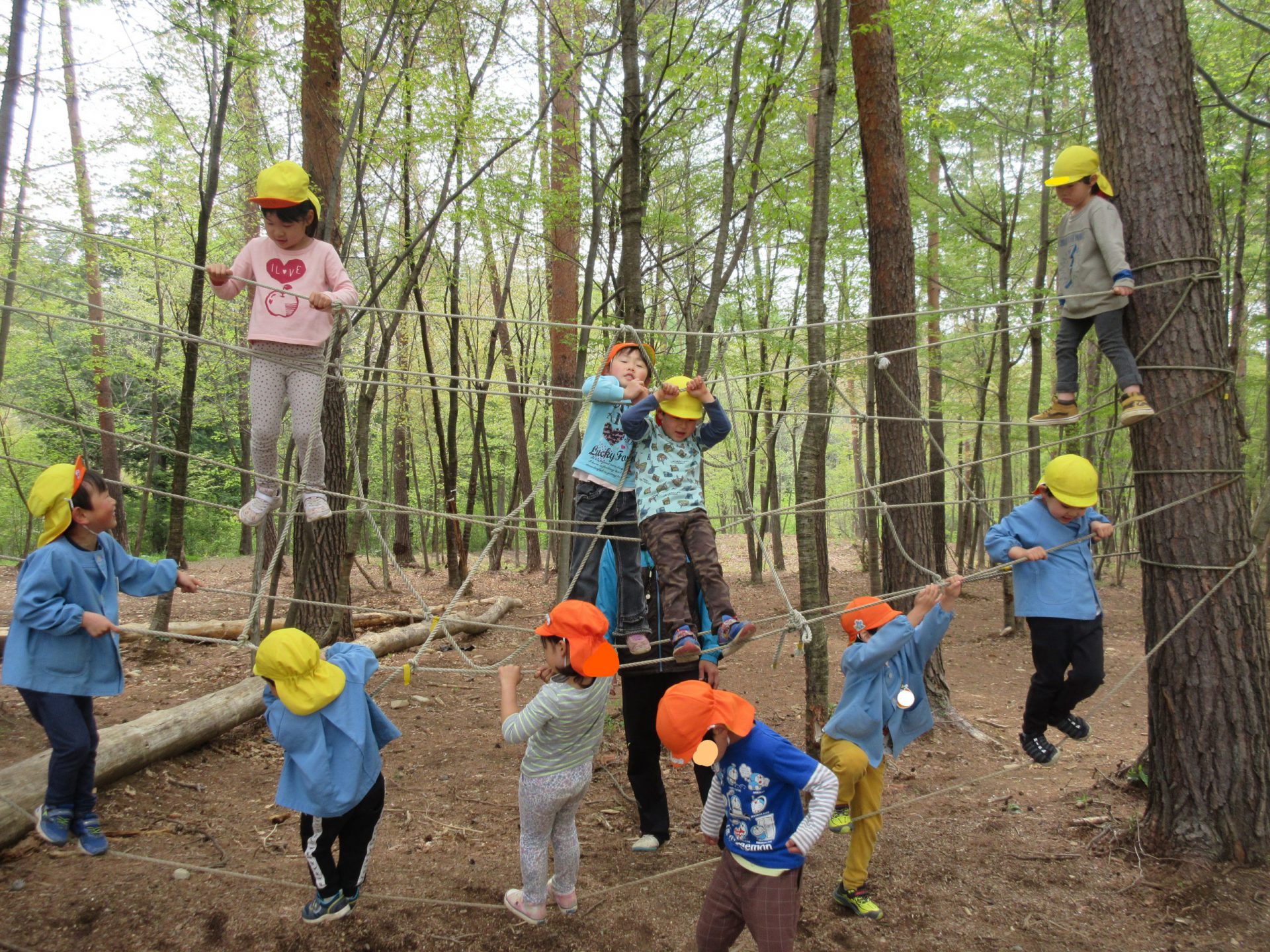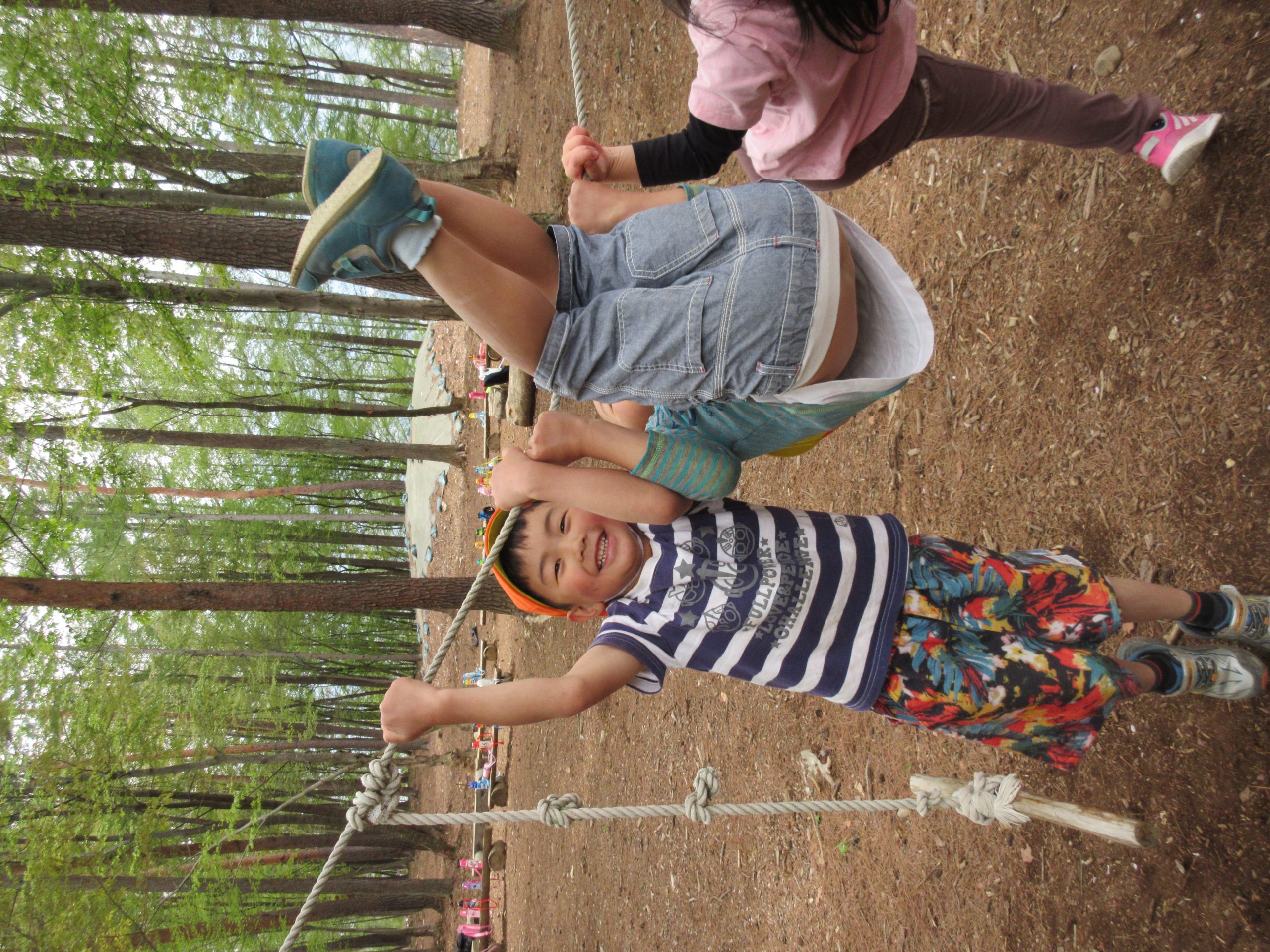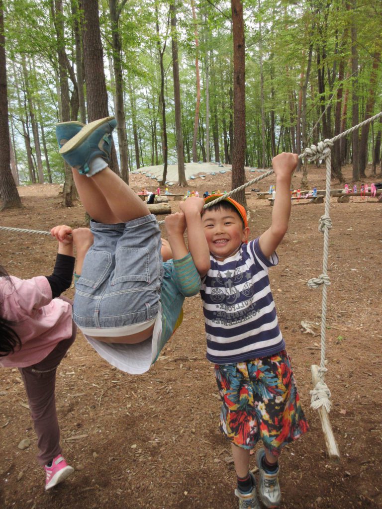 山でもチャレンジタイム!!保育園の鉄棒みたいにできるんだに!