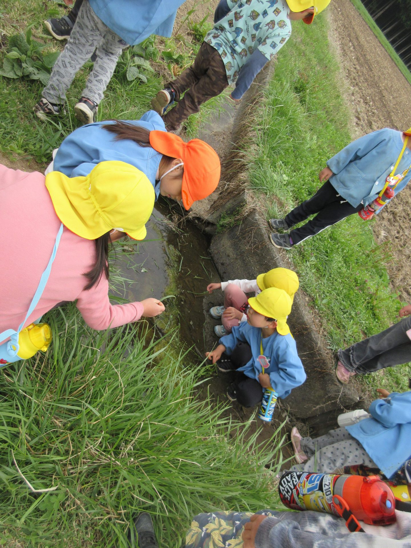「すごい!こっちにも穴がつながってる!」「タイコウチいるかなあ?」「あ!みずかまきり?」「なんか動いた!!」こうなると、ヨモギ採りどころじゃない(笑)