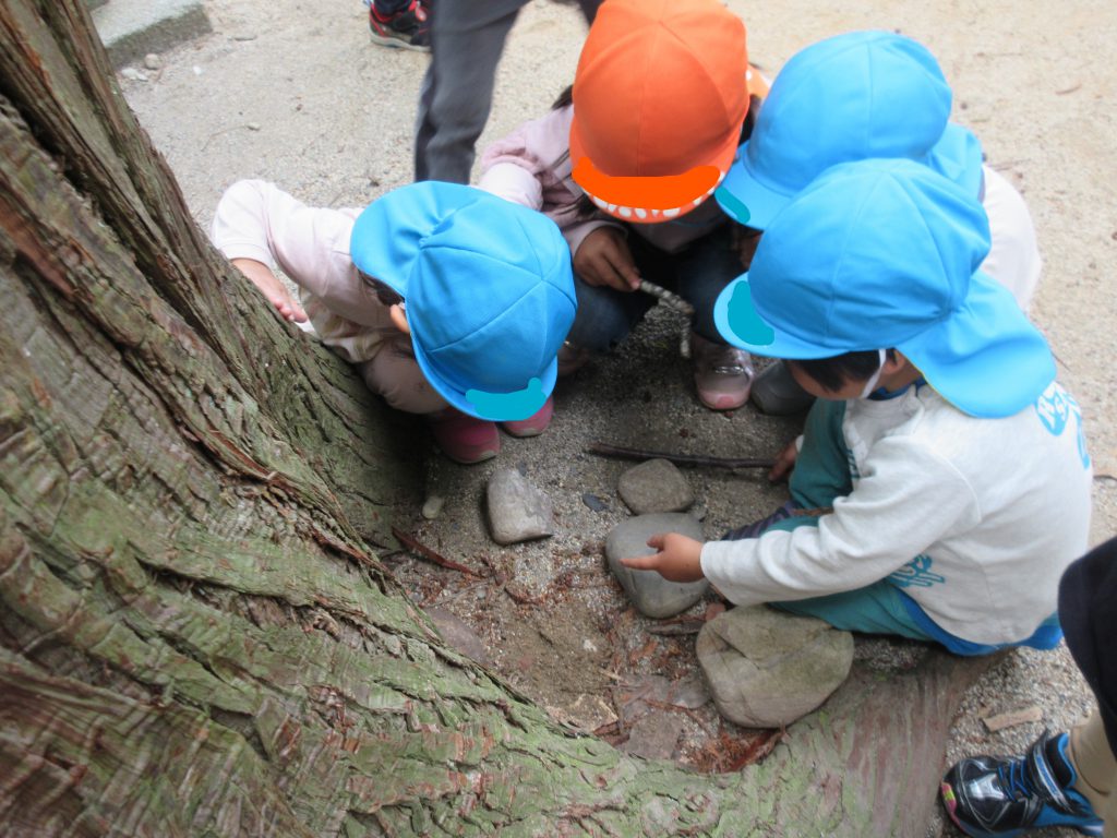 お兄ちゃんたちの姿を見て年少さんも探します