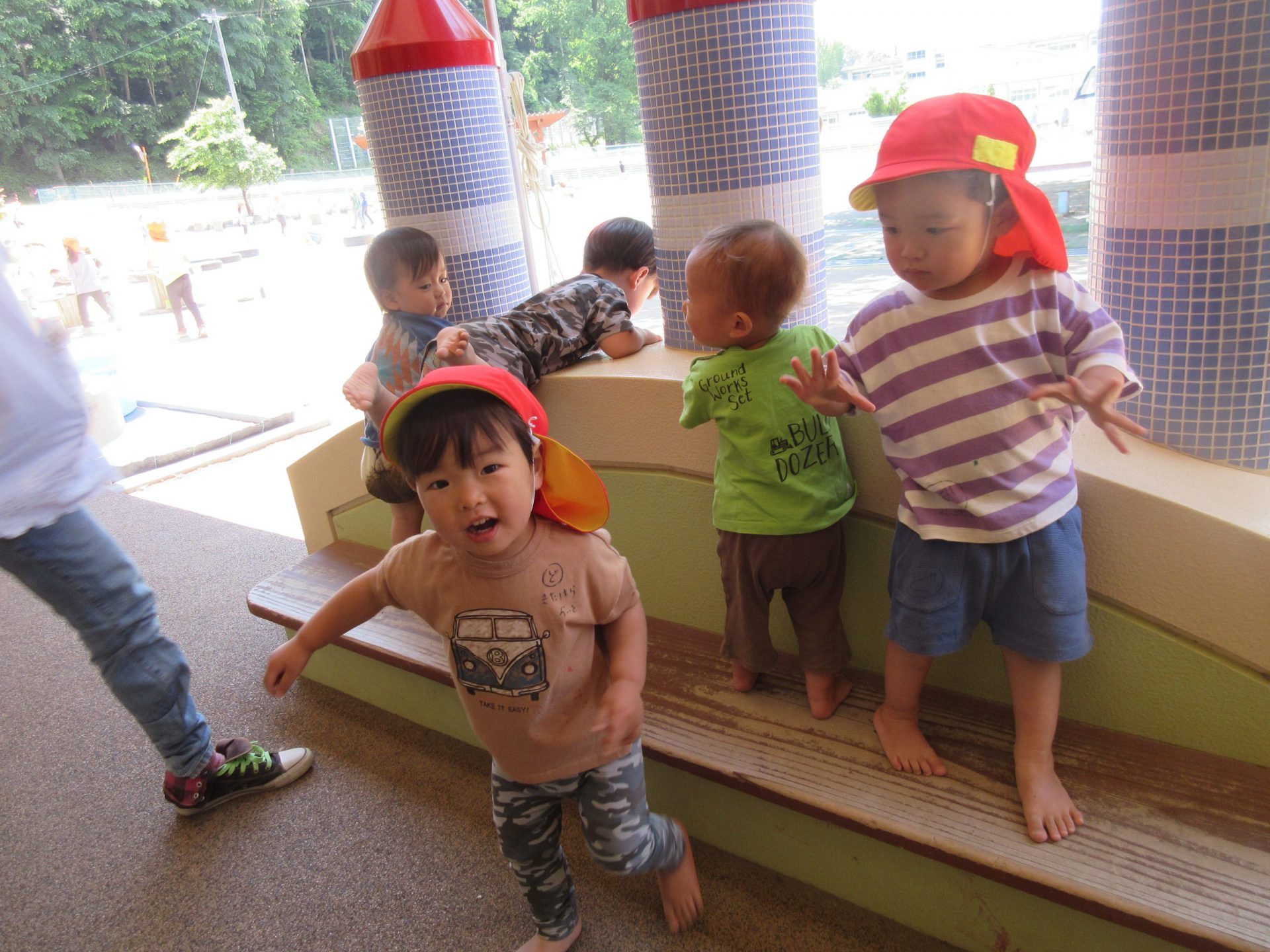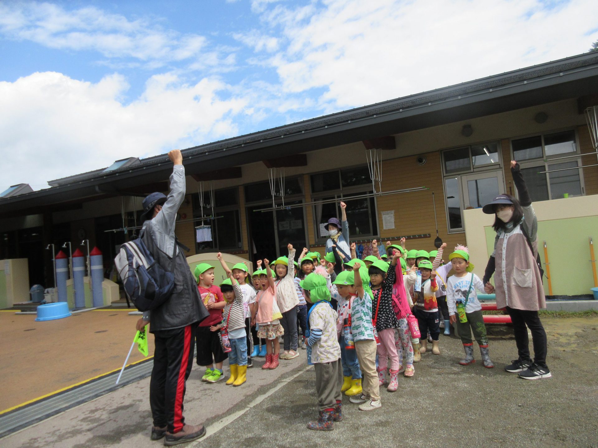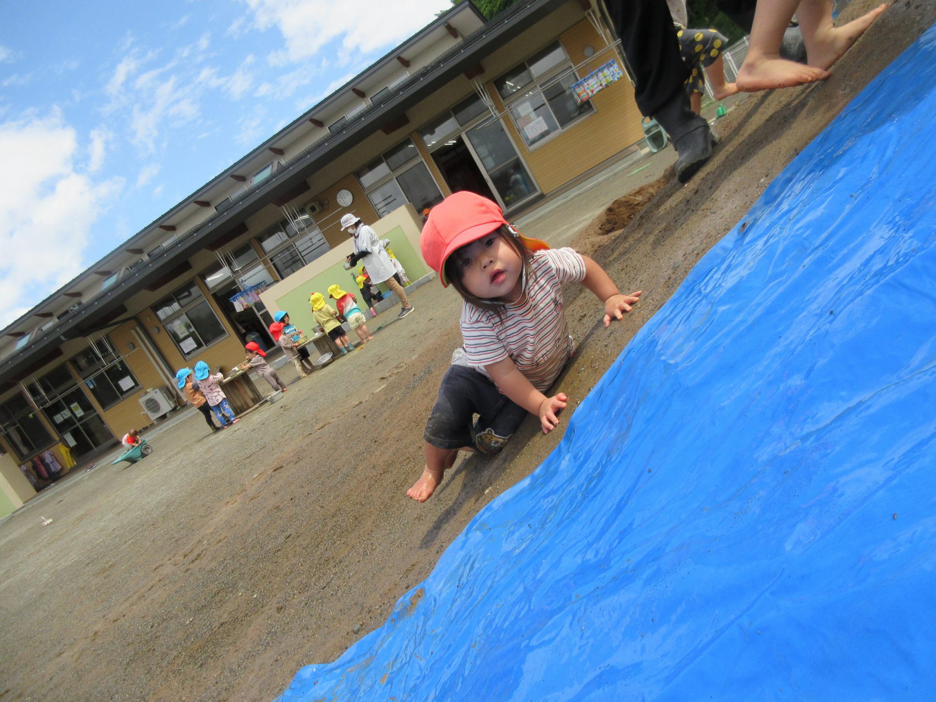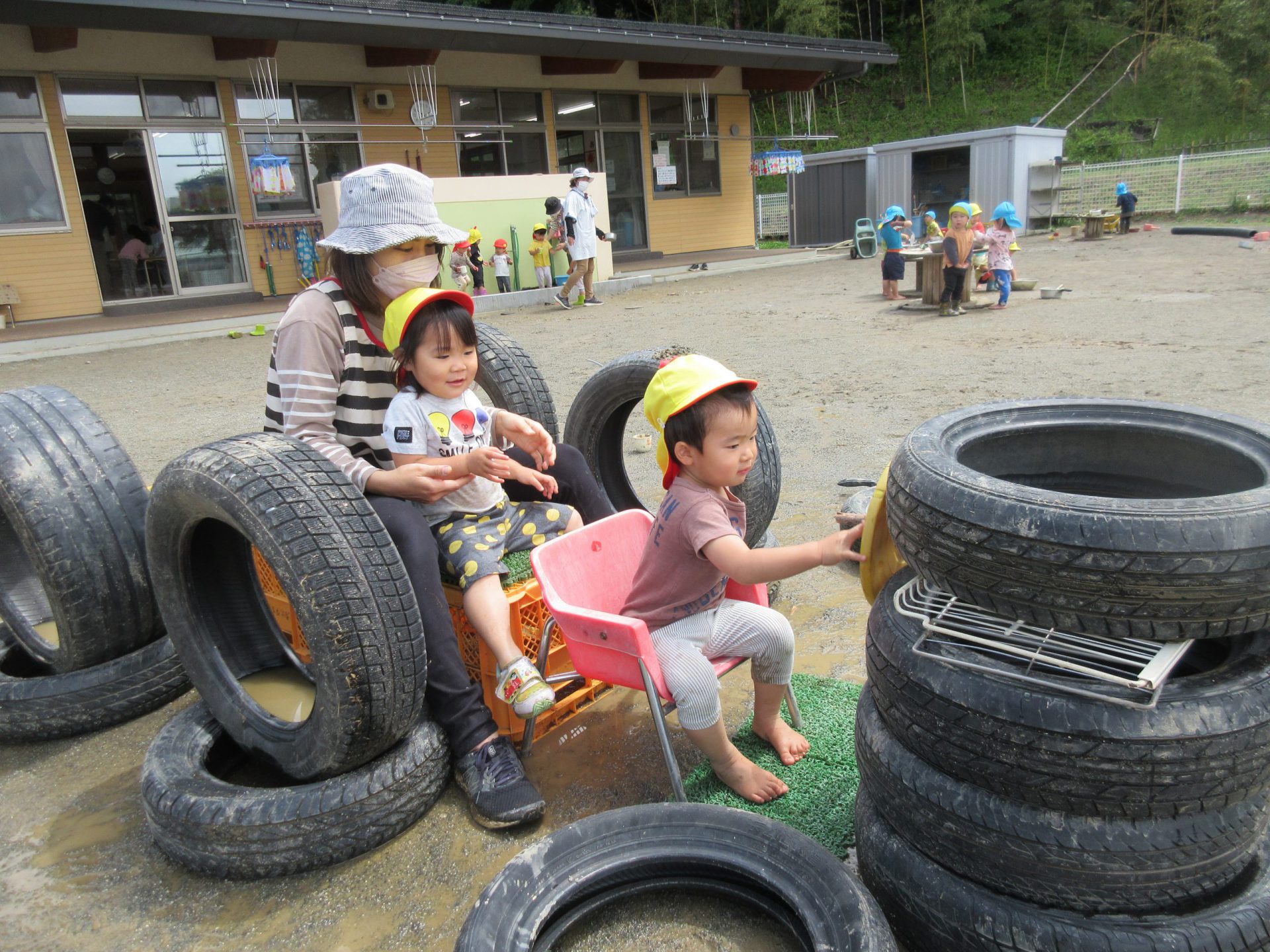 すべるけど、私も上まで行きたい!! 雨が降っても、子ども達は毎日思い思いの遊びを楽しんでます。 美味しいおにぎりをありがとうございました!