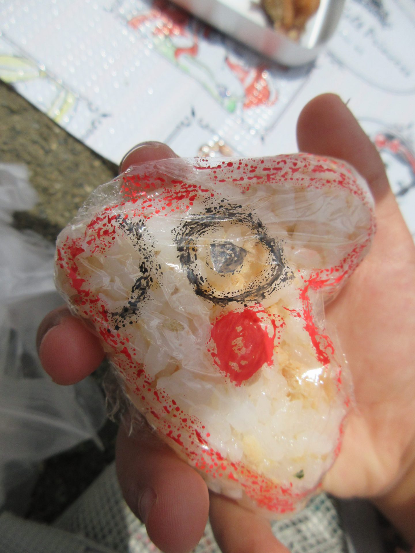 ママがにぎって私が顔を描いたんだよ