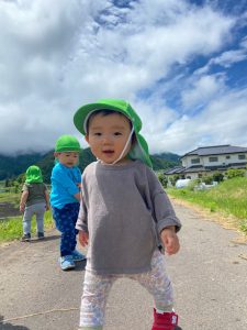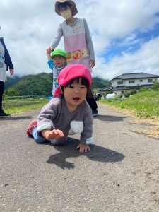 嬉しくて、ハイハイを始めたお友だちもいます!!田んぼまであと一息!です。