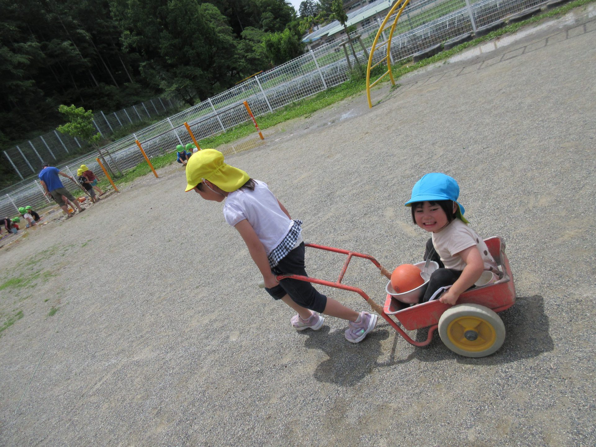 木陰でおしゃべりを楽しみながら。手つきが様になっていたので、すごいねえと言うと、「ママとね、チャーハンつくるお手伝いしたんだよ」なるほど!日頃の成果なんだね
