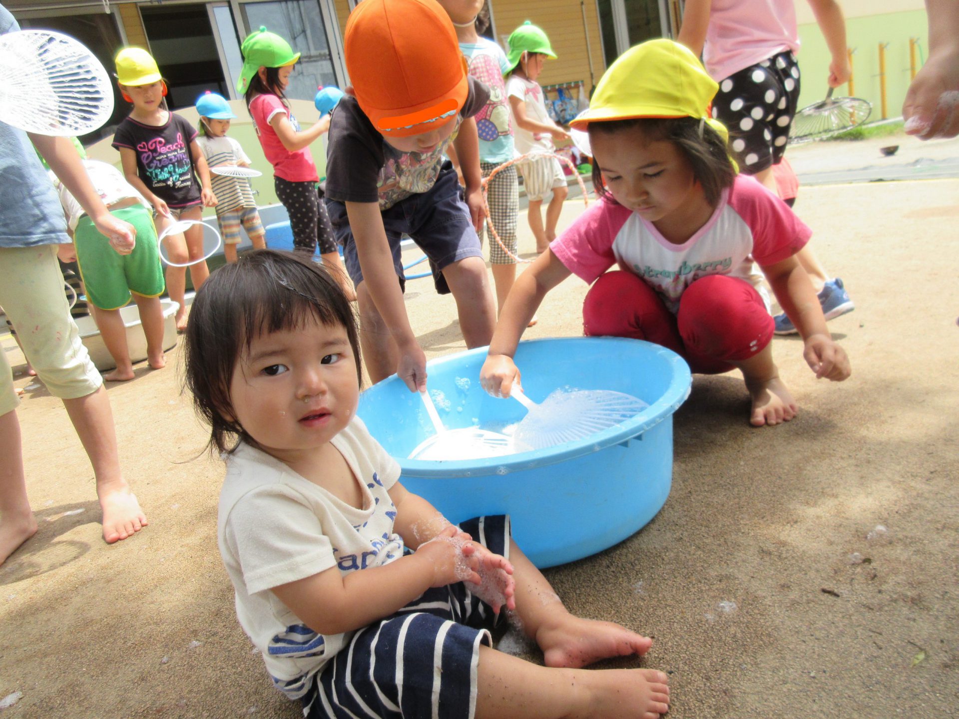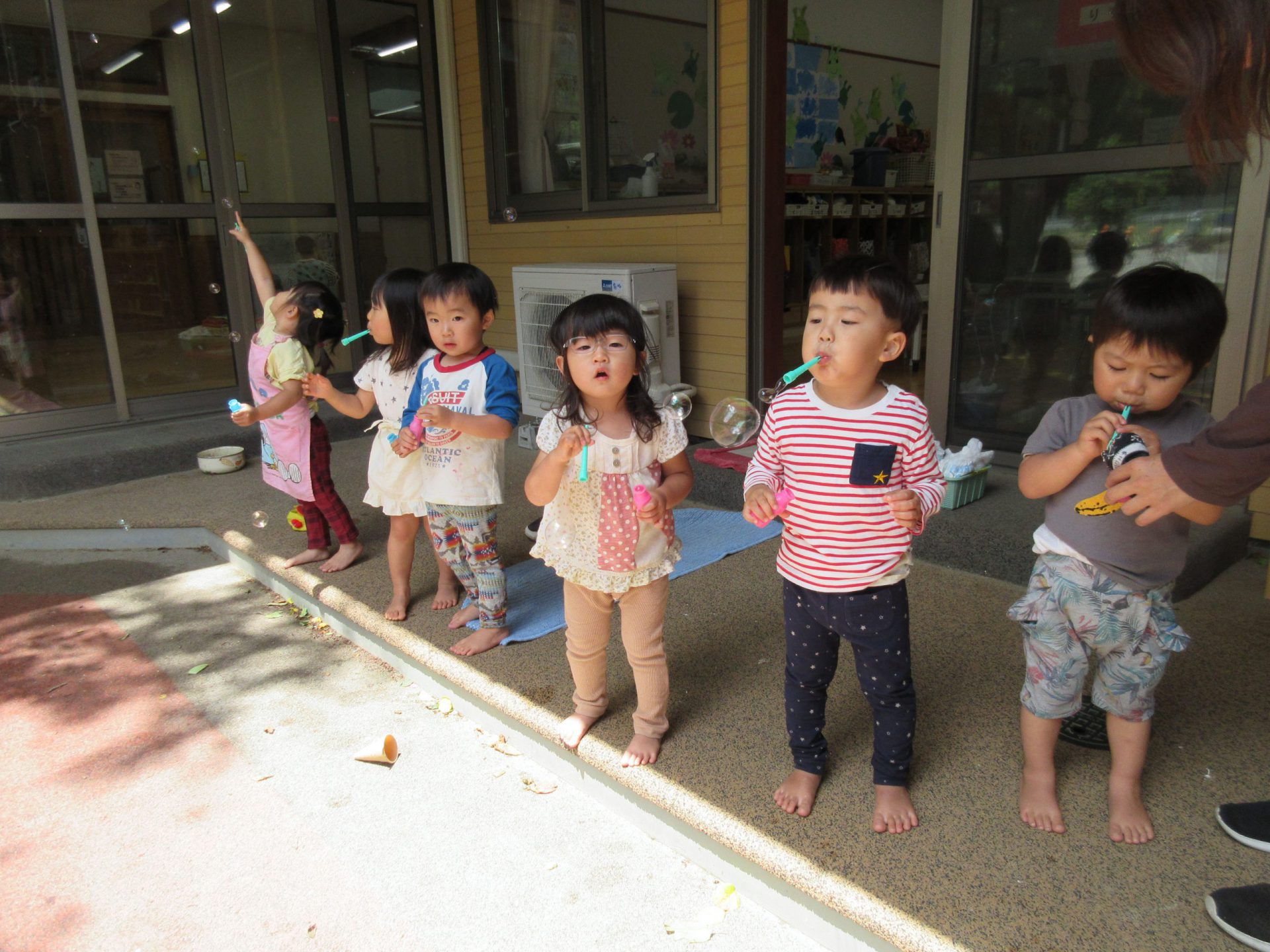 大きなシャボン玉は大人気!0.1歳児さんもやってみよう!