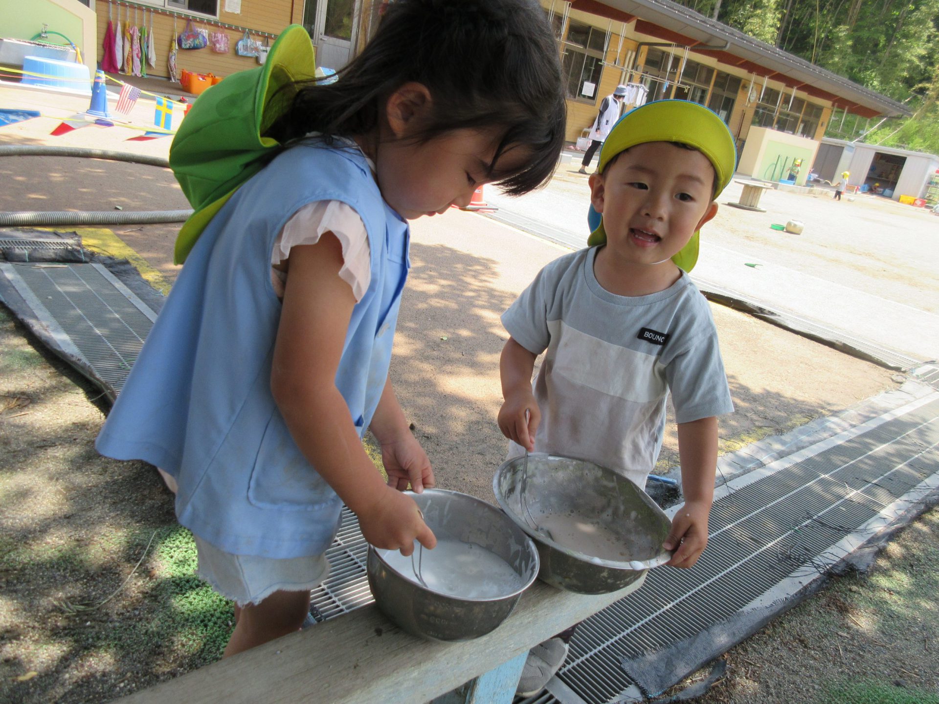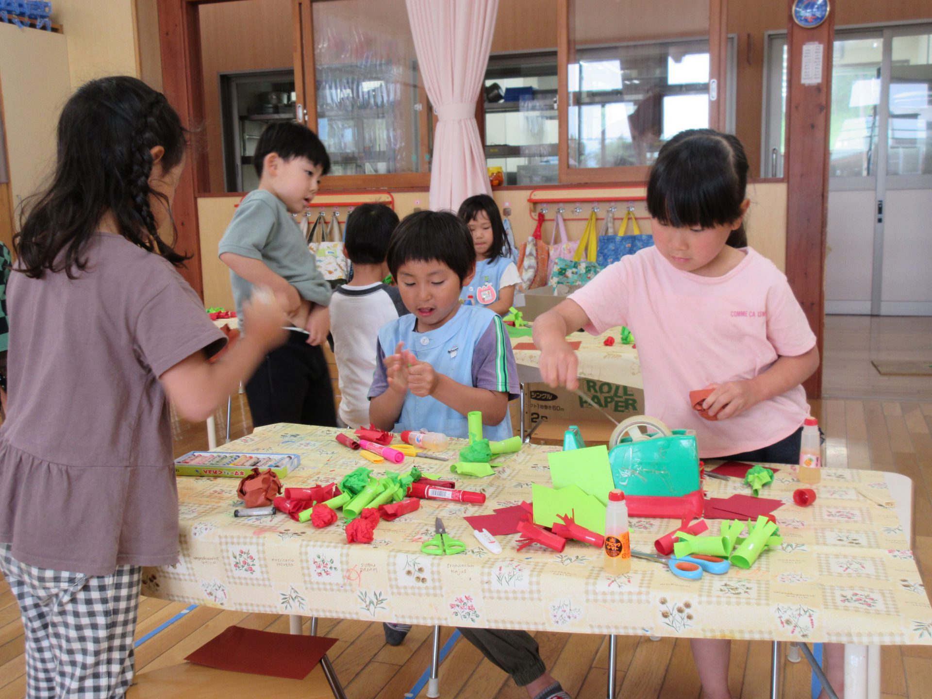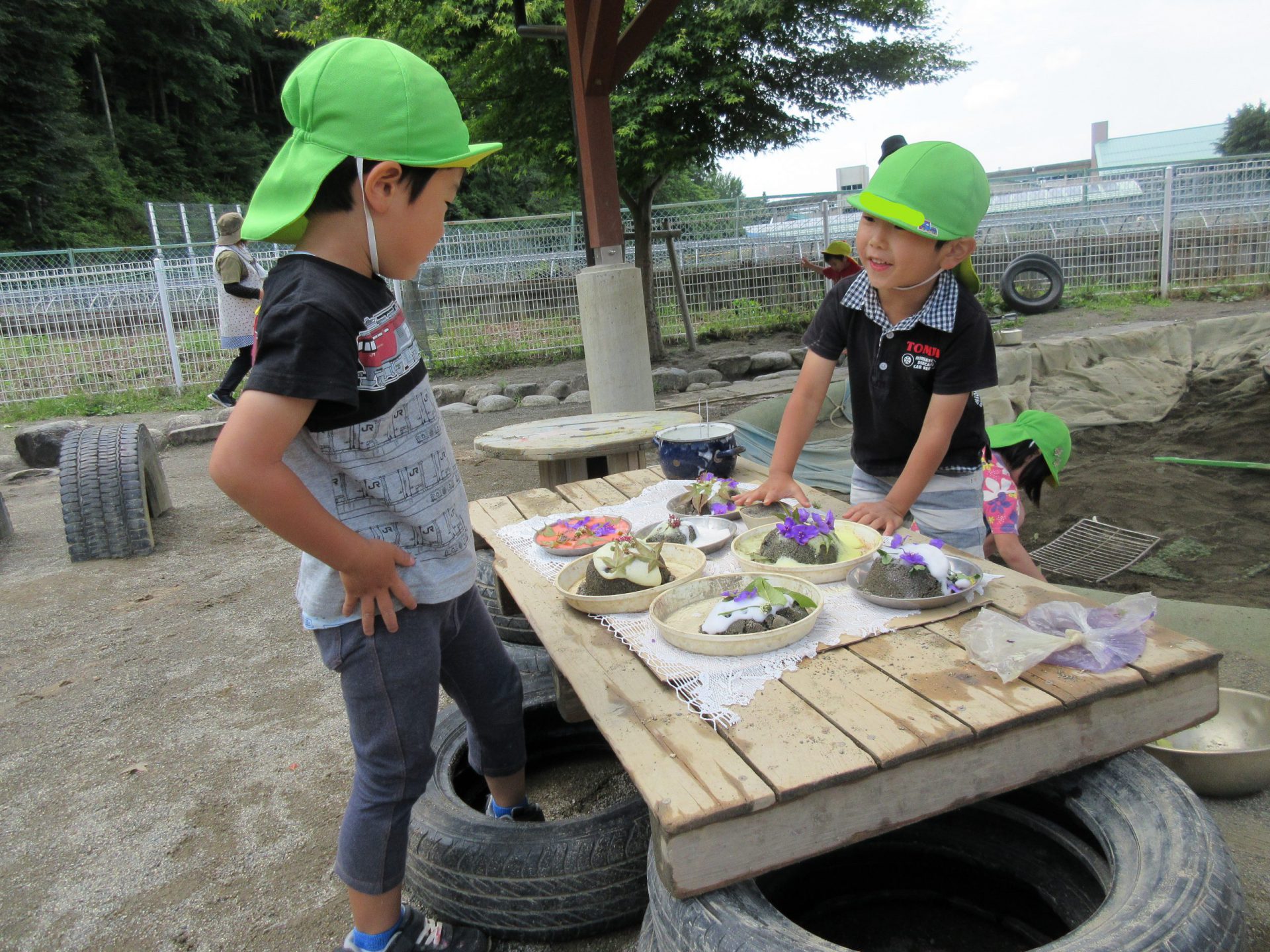 そして、年長さんは…というと、泥・水・ドッジボール・散歩等も楽しみながら、コツコツとお店屋さんの品物作り。すごい数の品物ができています。楽しみだな😊年長さんよろしくね