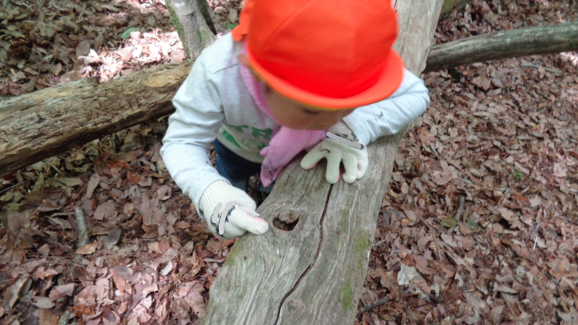 「この穴なんだろう?」 「暗いねー。おばけがいるんじゃない?おーい。おばけいますかー?」