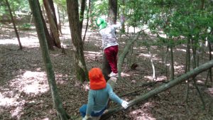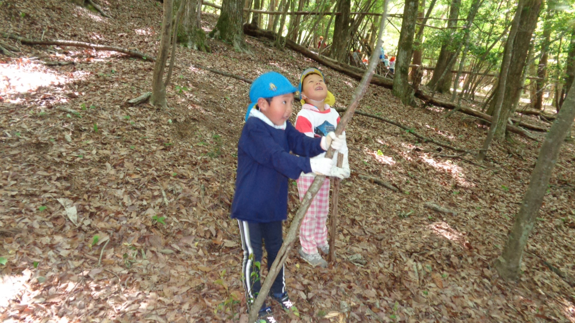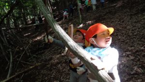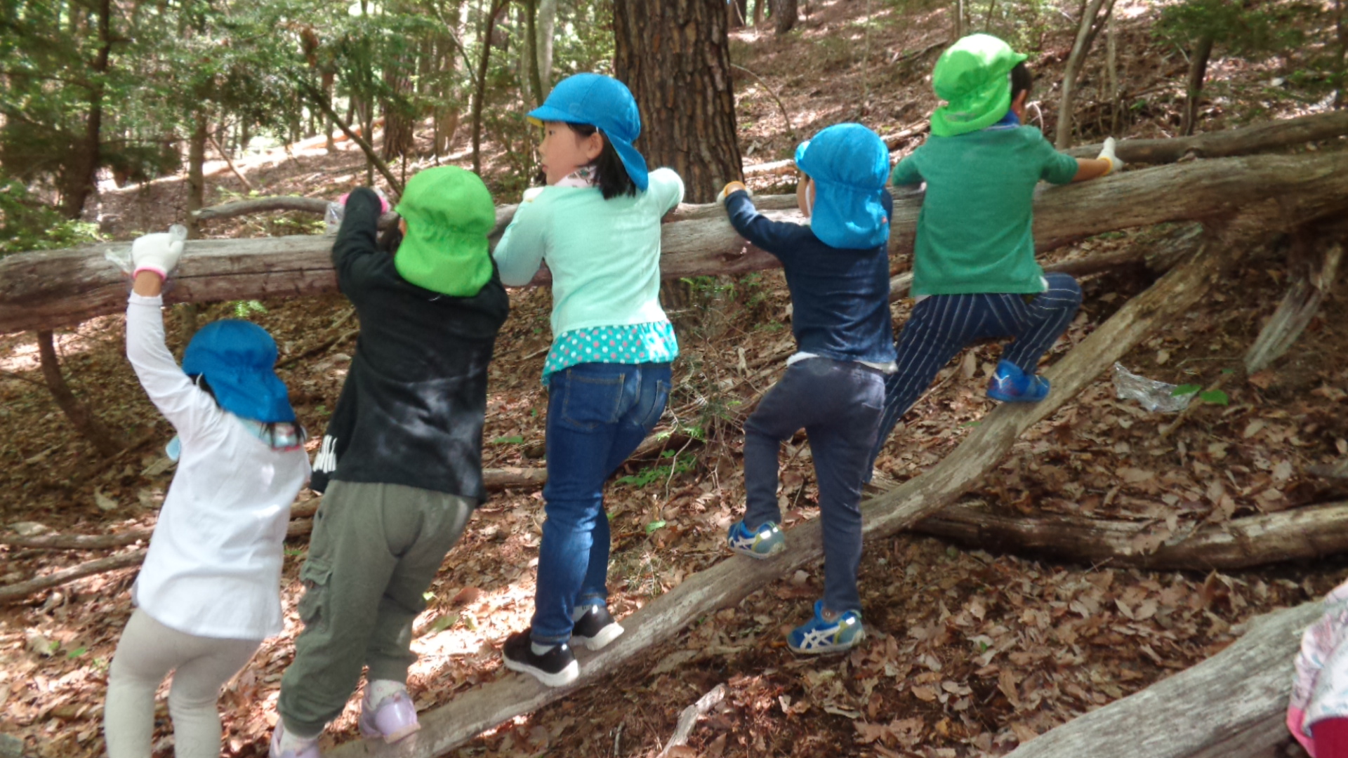 「走るのって楽しいね」 「おーい待ってよー」山の中を駆け回る、高低差や傾斜があり、葉っぱを踏む音もするね。いつもとの違いに楽しさも倍増!