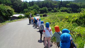「いくおさんの山へレッツゴー!」 お天気にも恵まれ、いくおさんの山へ出発です。今日は何して遊ぼうかな?