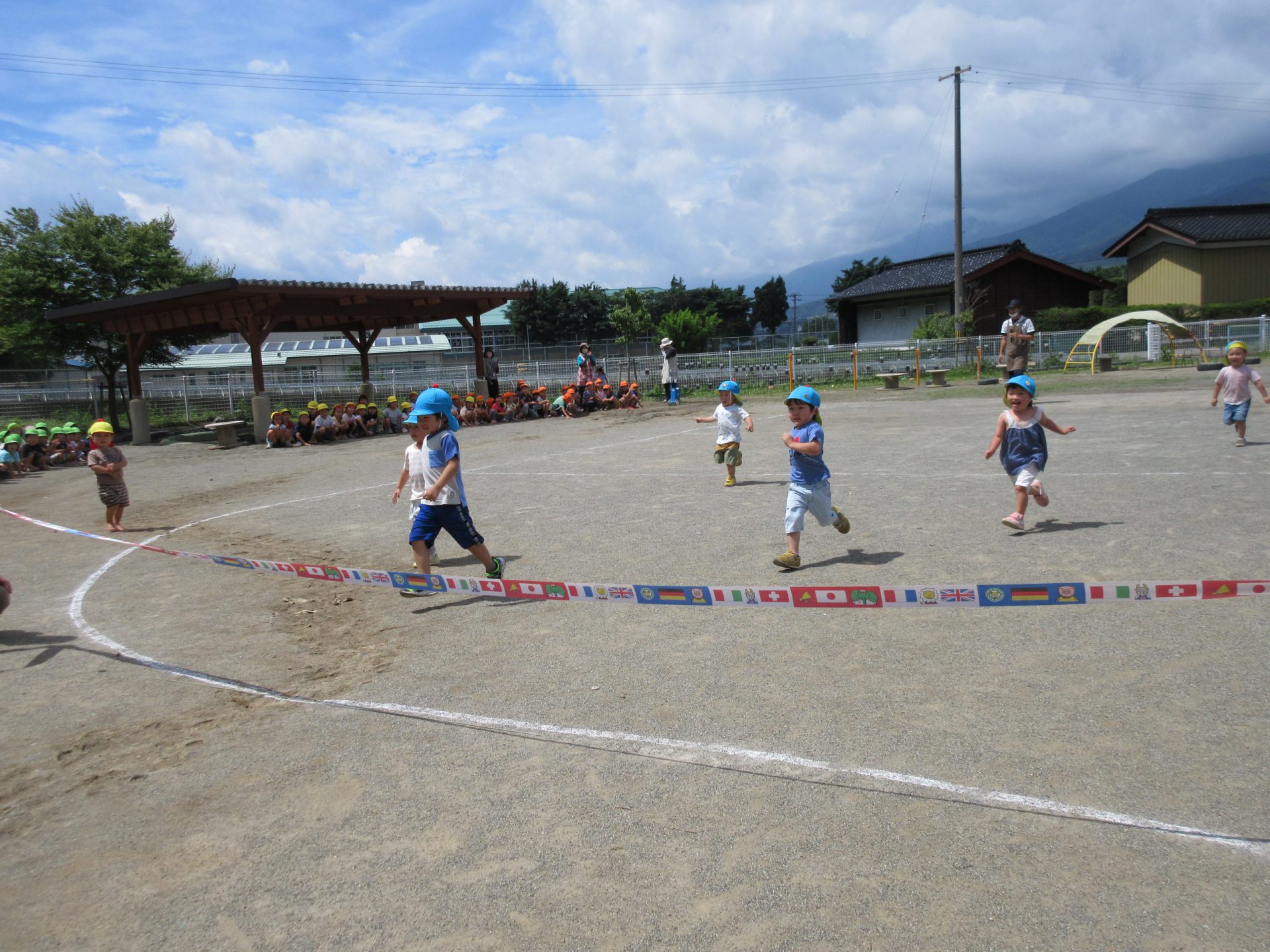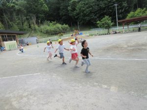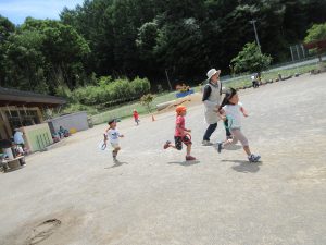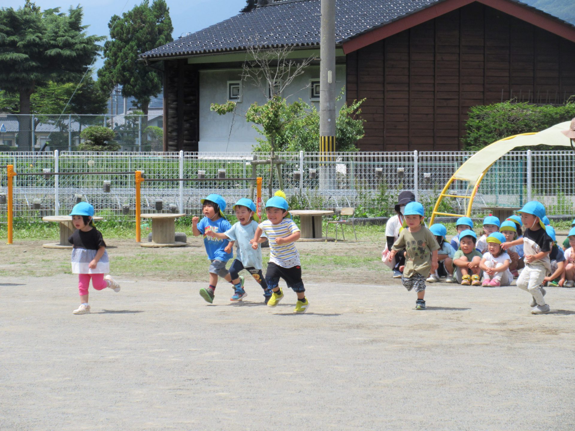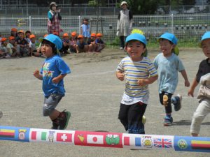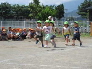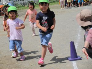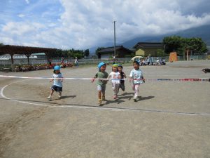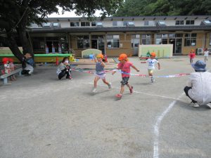 いつも走り込んでいる年長さん。今日も大接戦です。