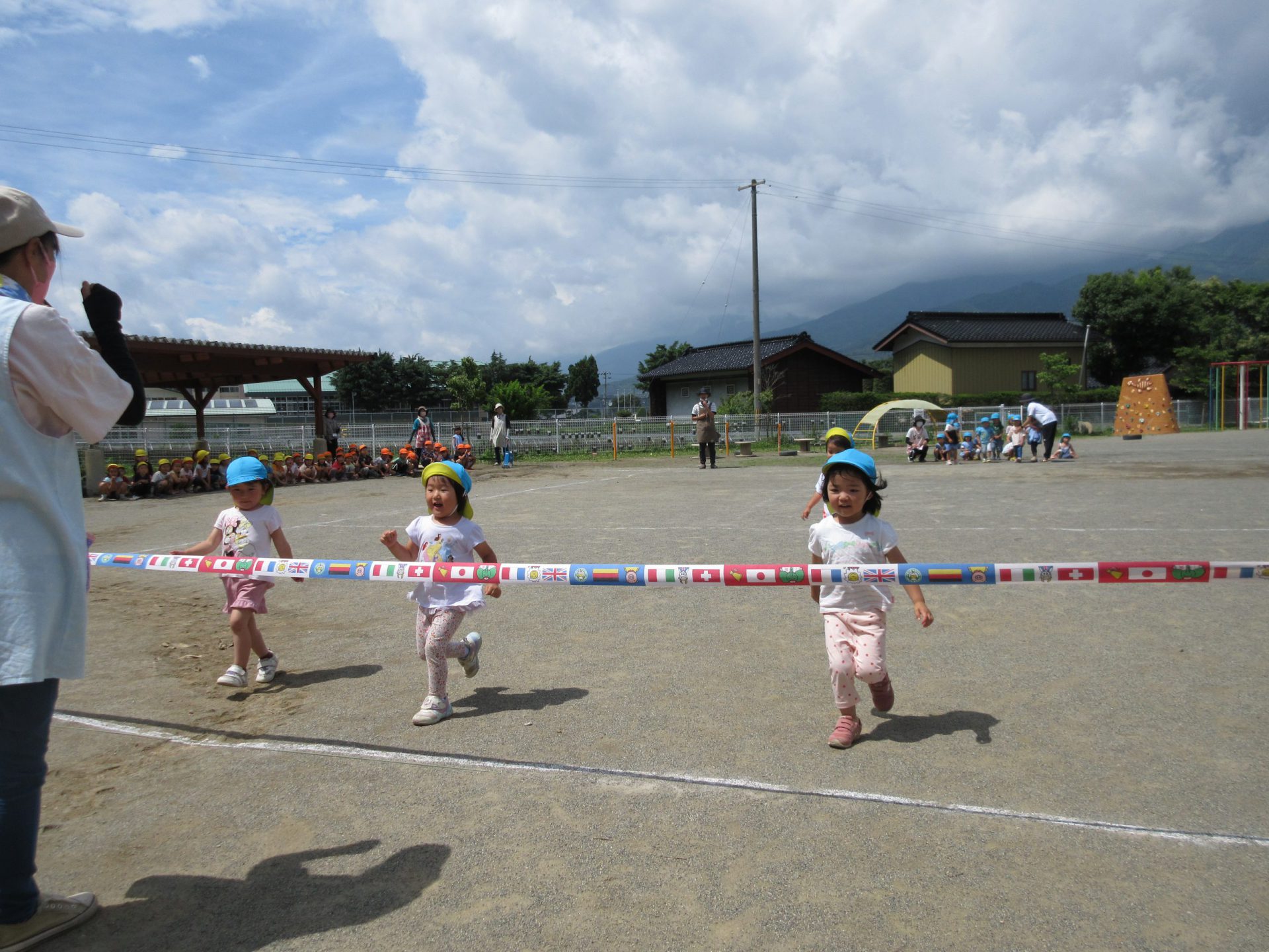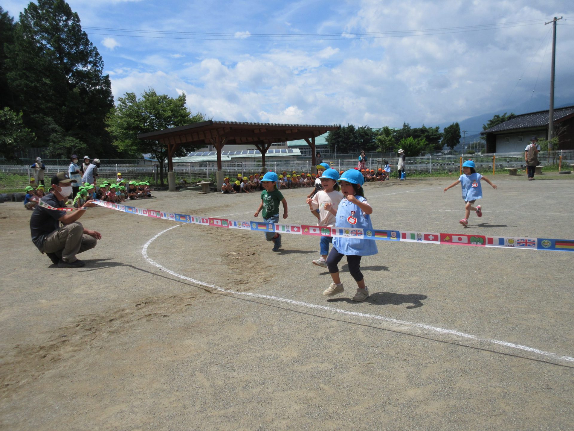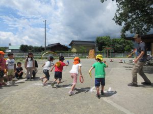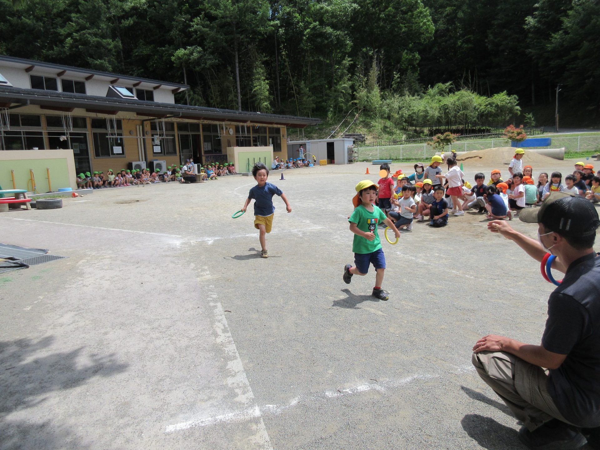 いつも走り込んでいる年長さん。今日も大接戦です。