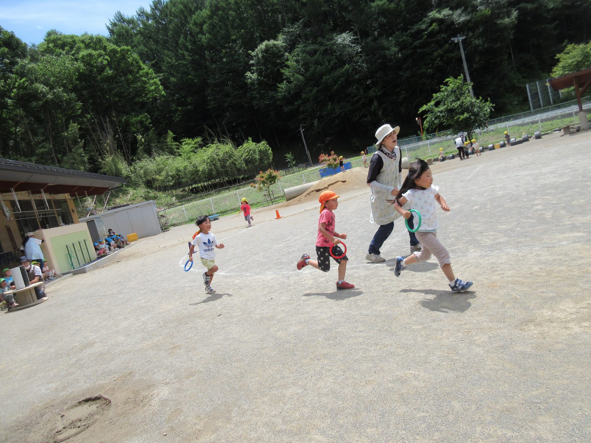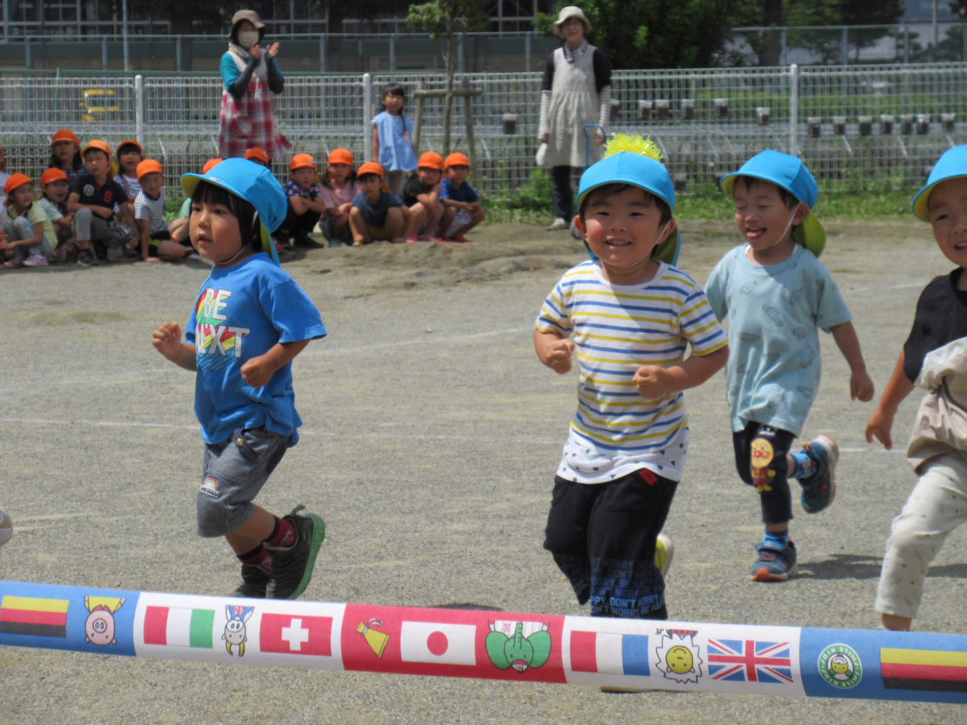 最後は年長さんのリレーを応援です。 いつも走っていて、かっこいいんだよね。