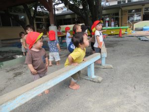 年中・長さんを見ていた年少さんは、早くやりたくてやりたくて…