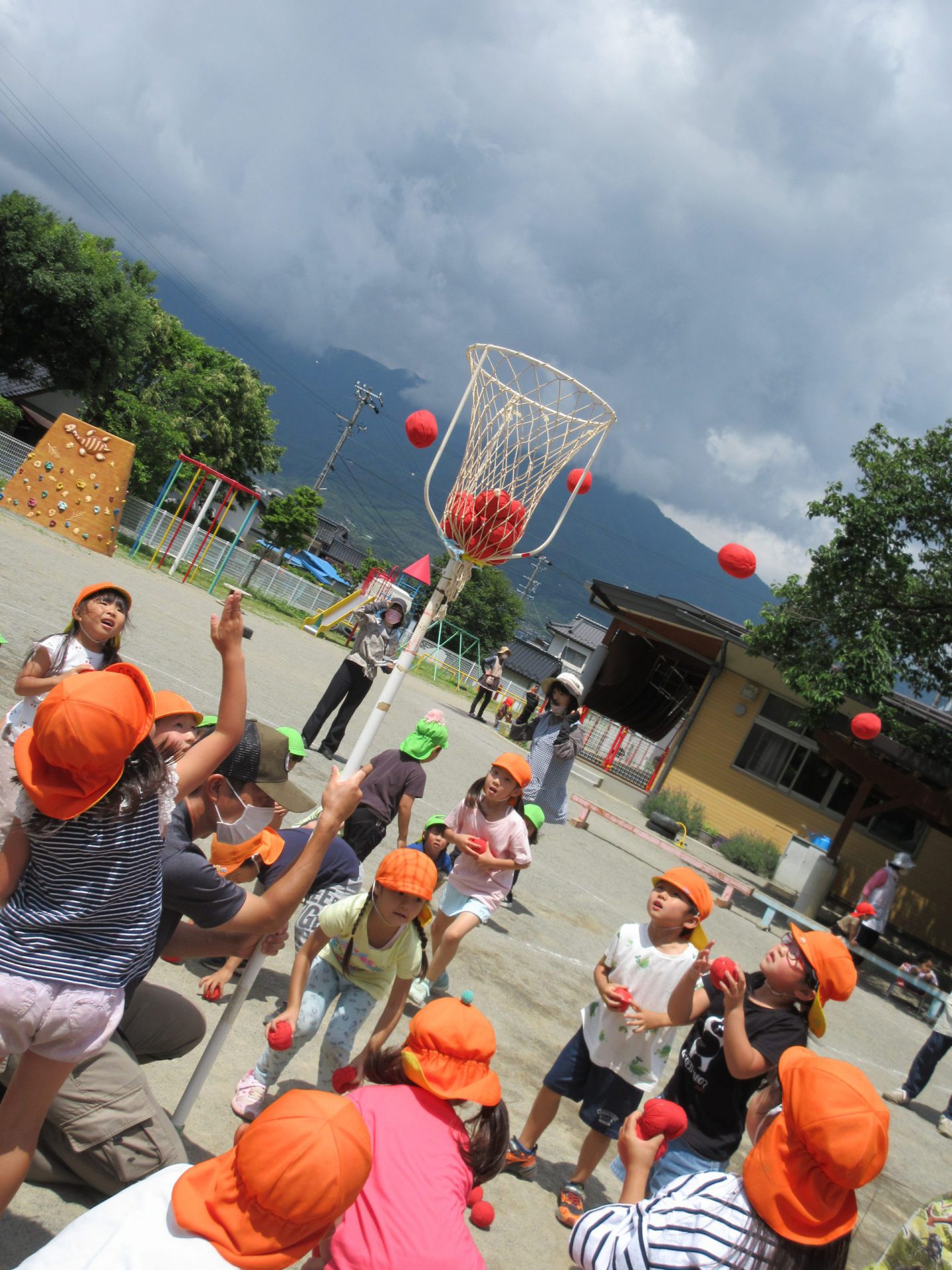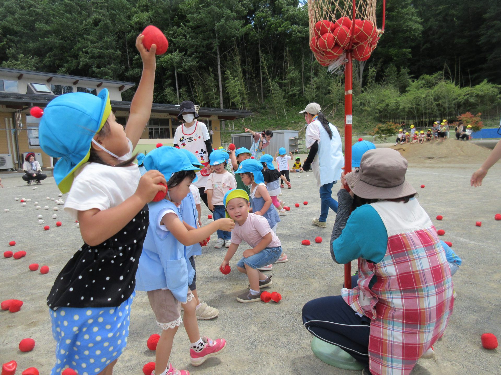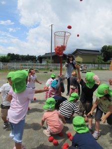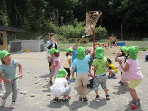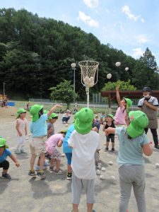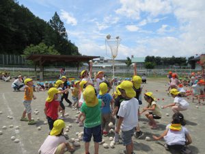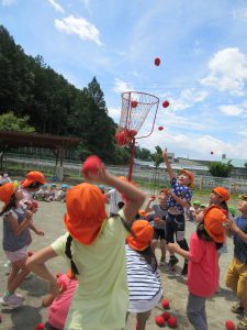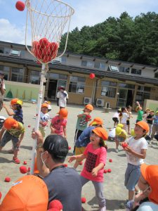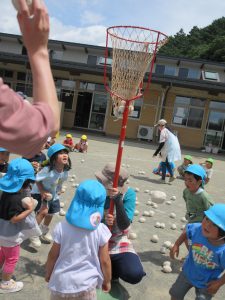 つぎは玉入れ まずは年長さんのお手本です