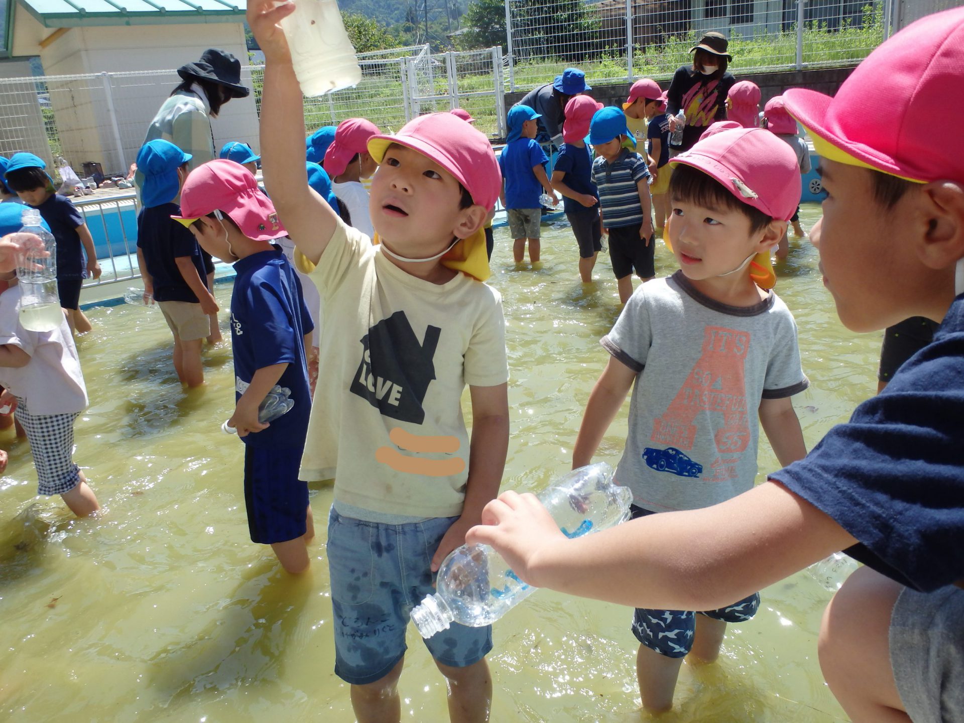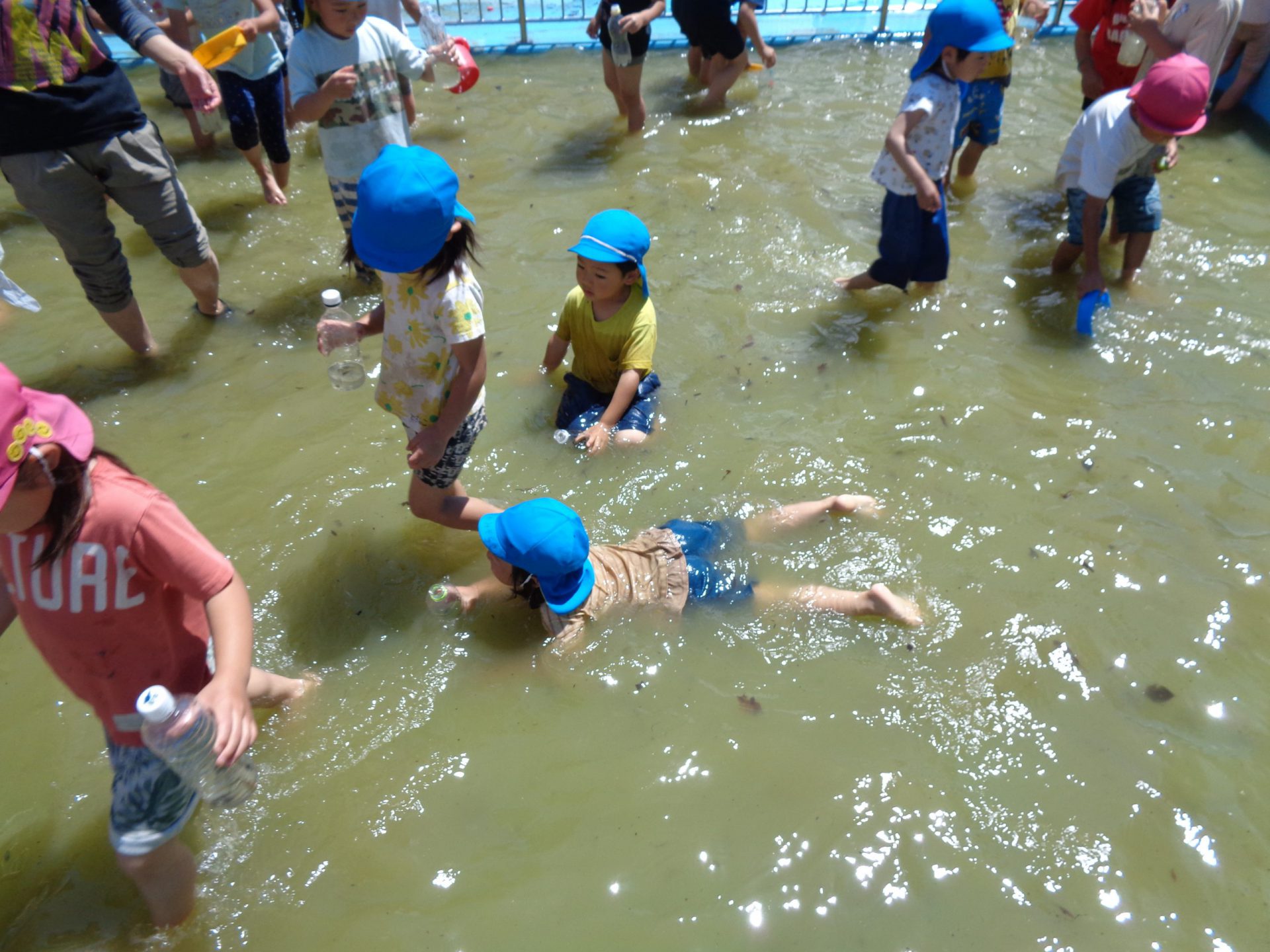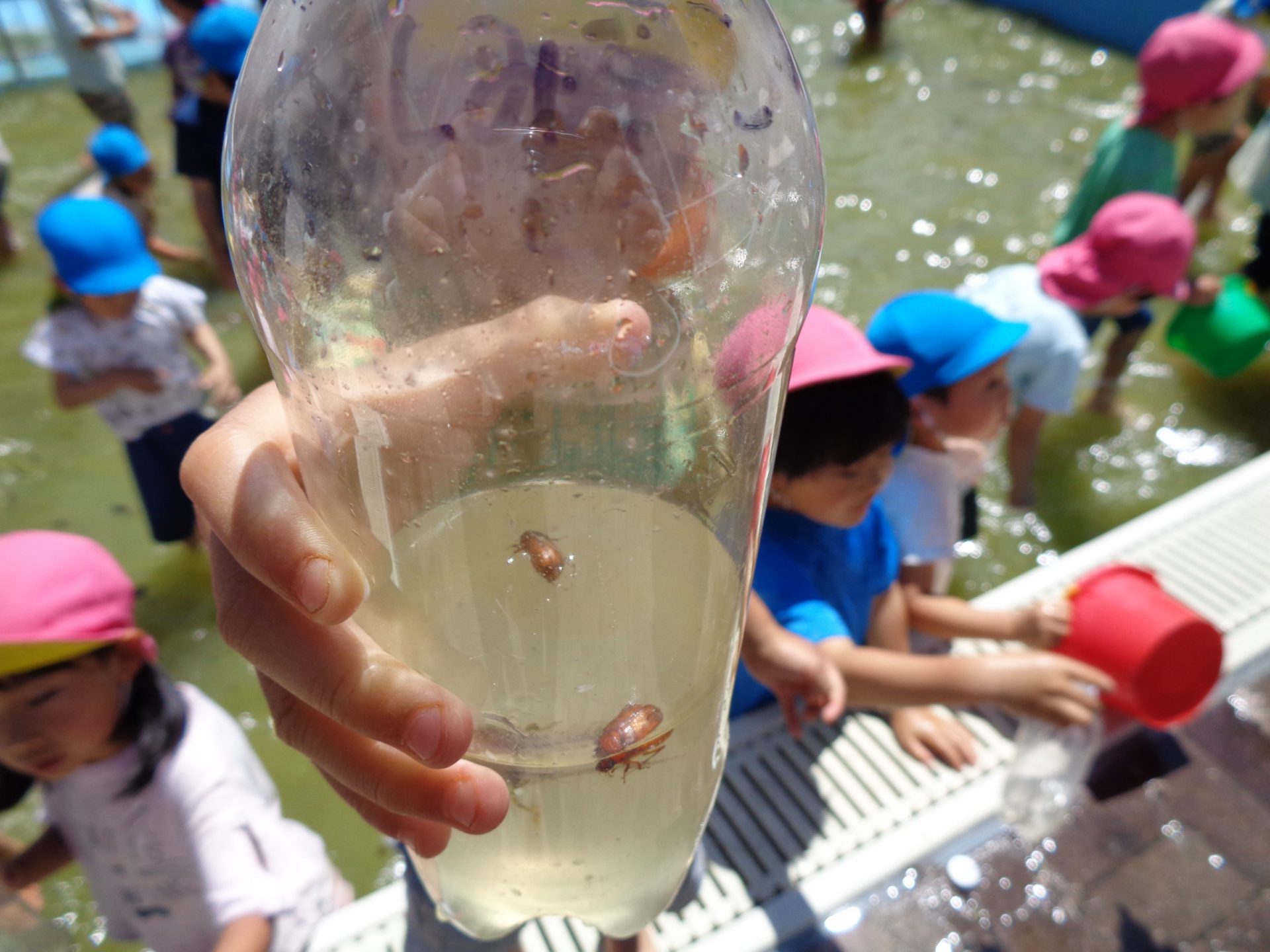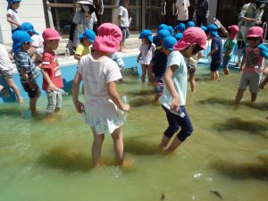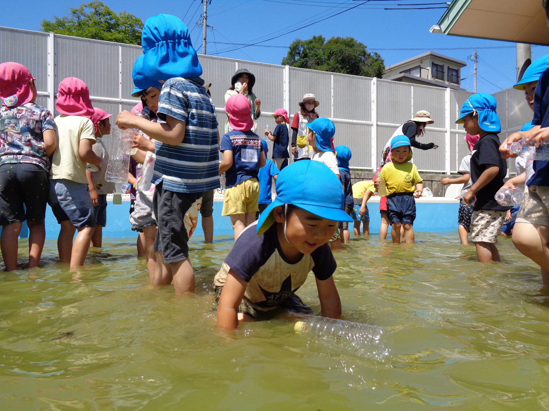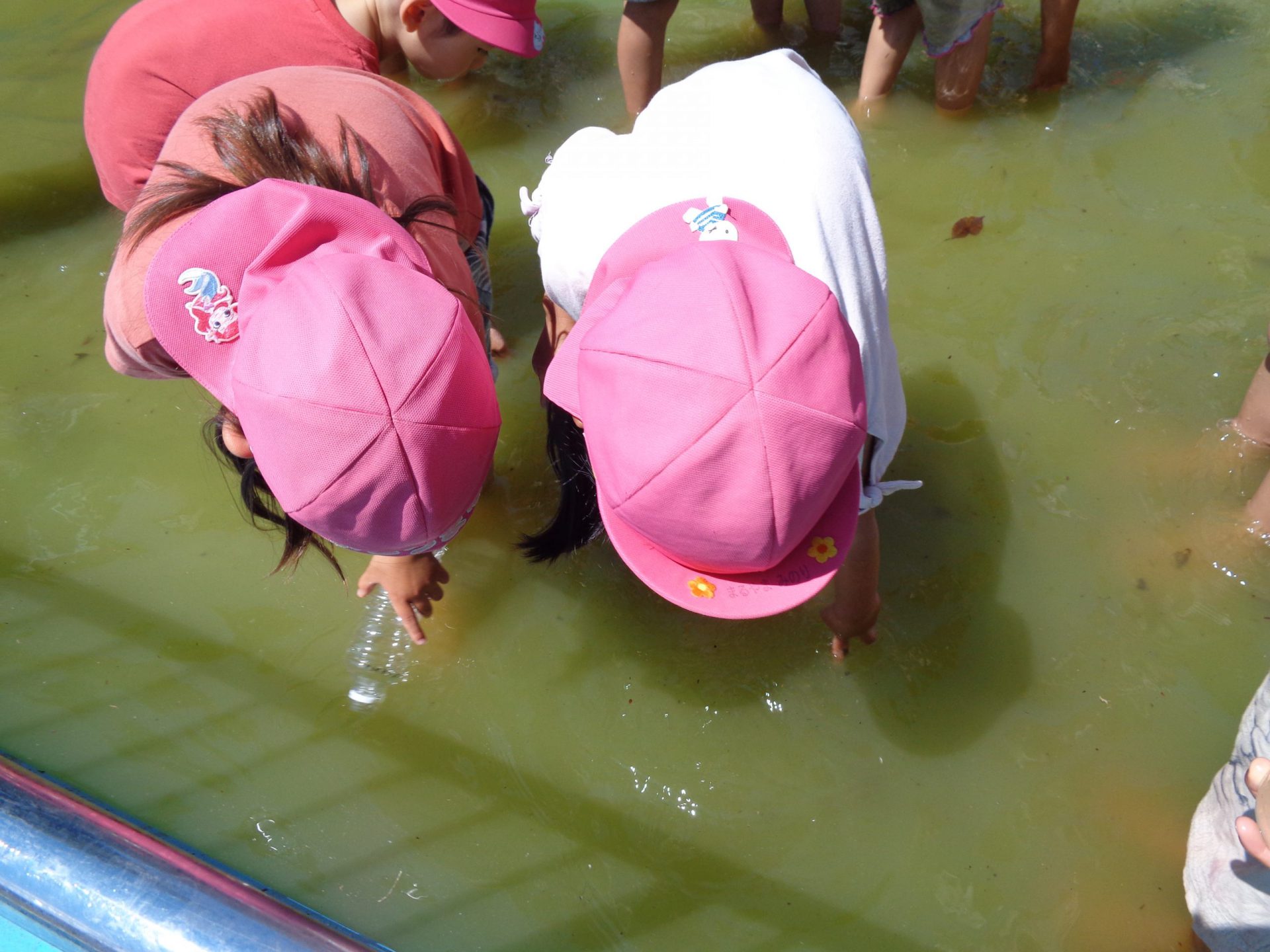 プールに入る前には見えていたオタマジャクシがみんなで入るとあっという間に濁って見えなくなってしまいました。