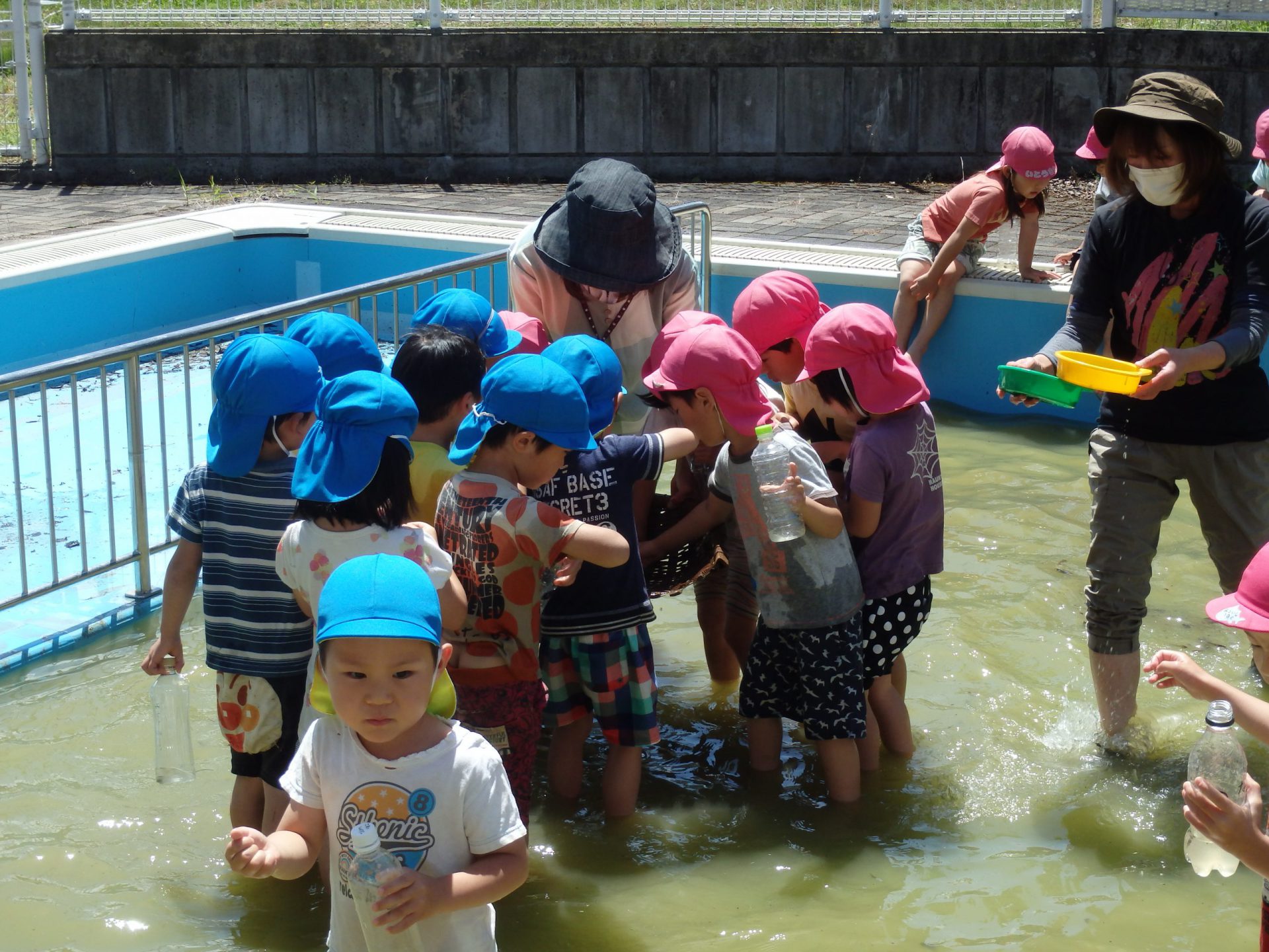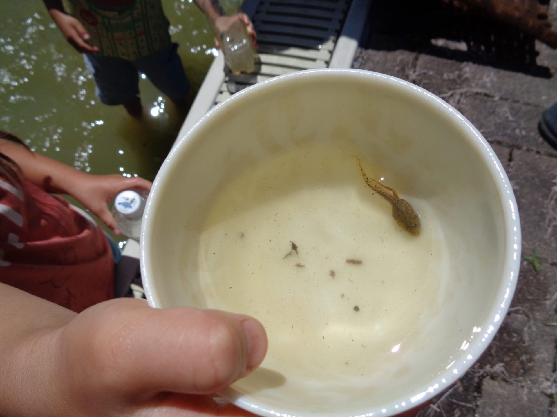6月のある日、近くの支援センターのプール(そうじ前)にオタマジャクシを捕まえに行きました。