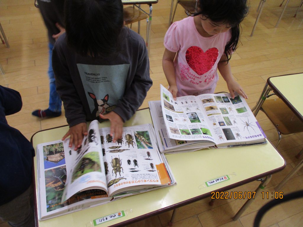 図鑑を開いて、研究中・・・・。。。答えはわからなくても、この探求心が大切ですね。