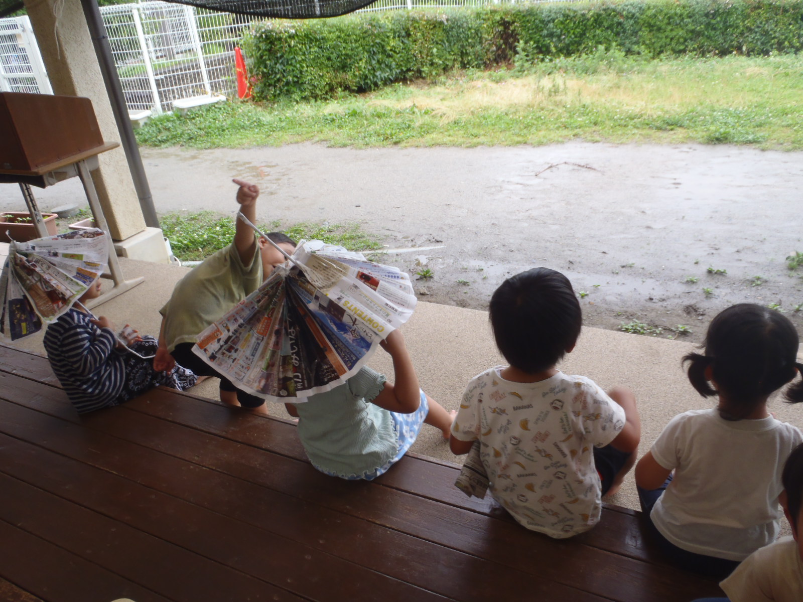 雨の日でもたくさんの楽しみを見出せる子ども達。その姿に子どもって素敵だなと思うのでした。