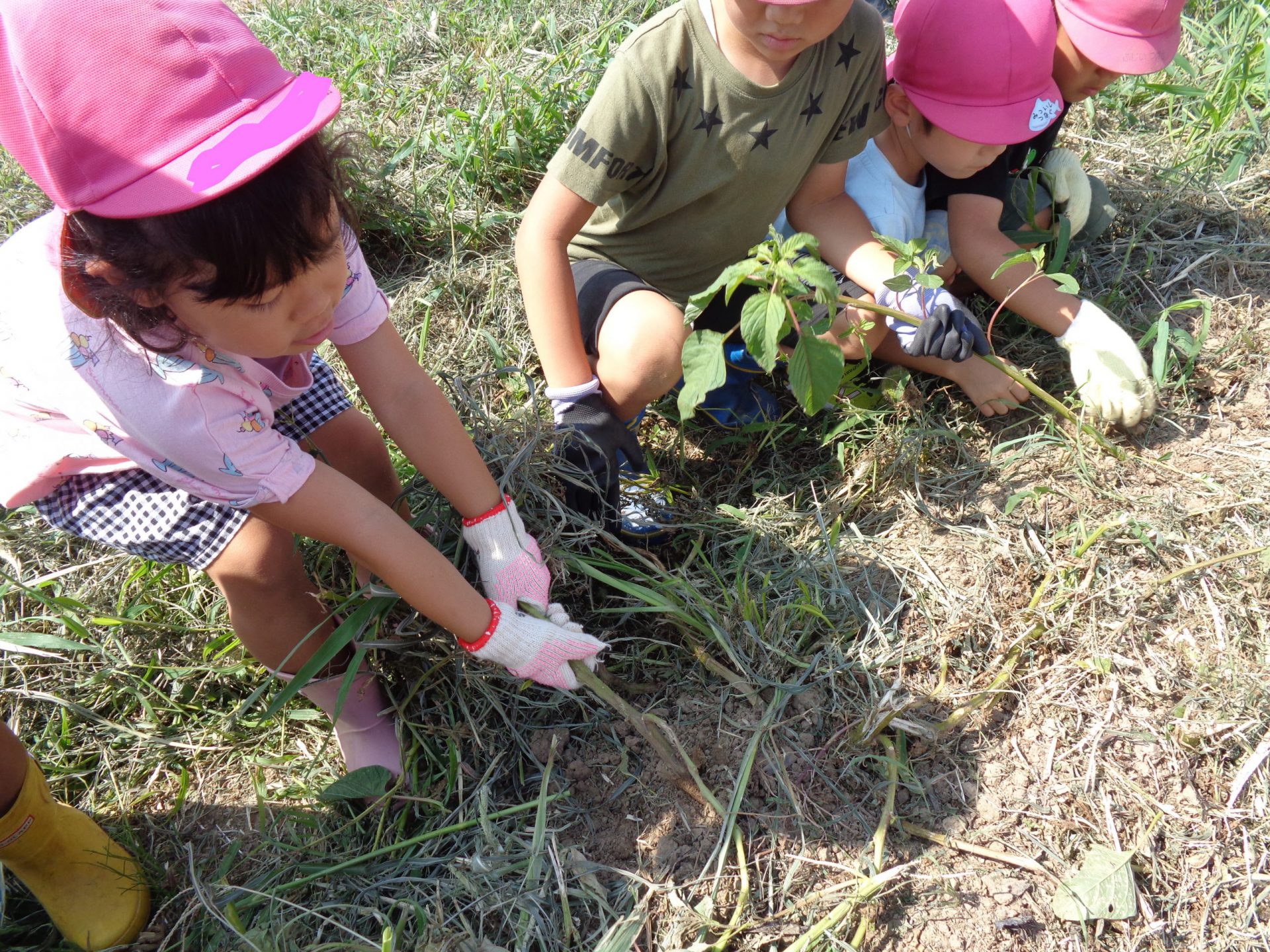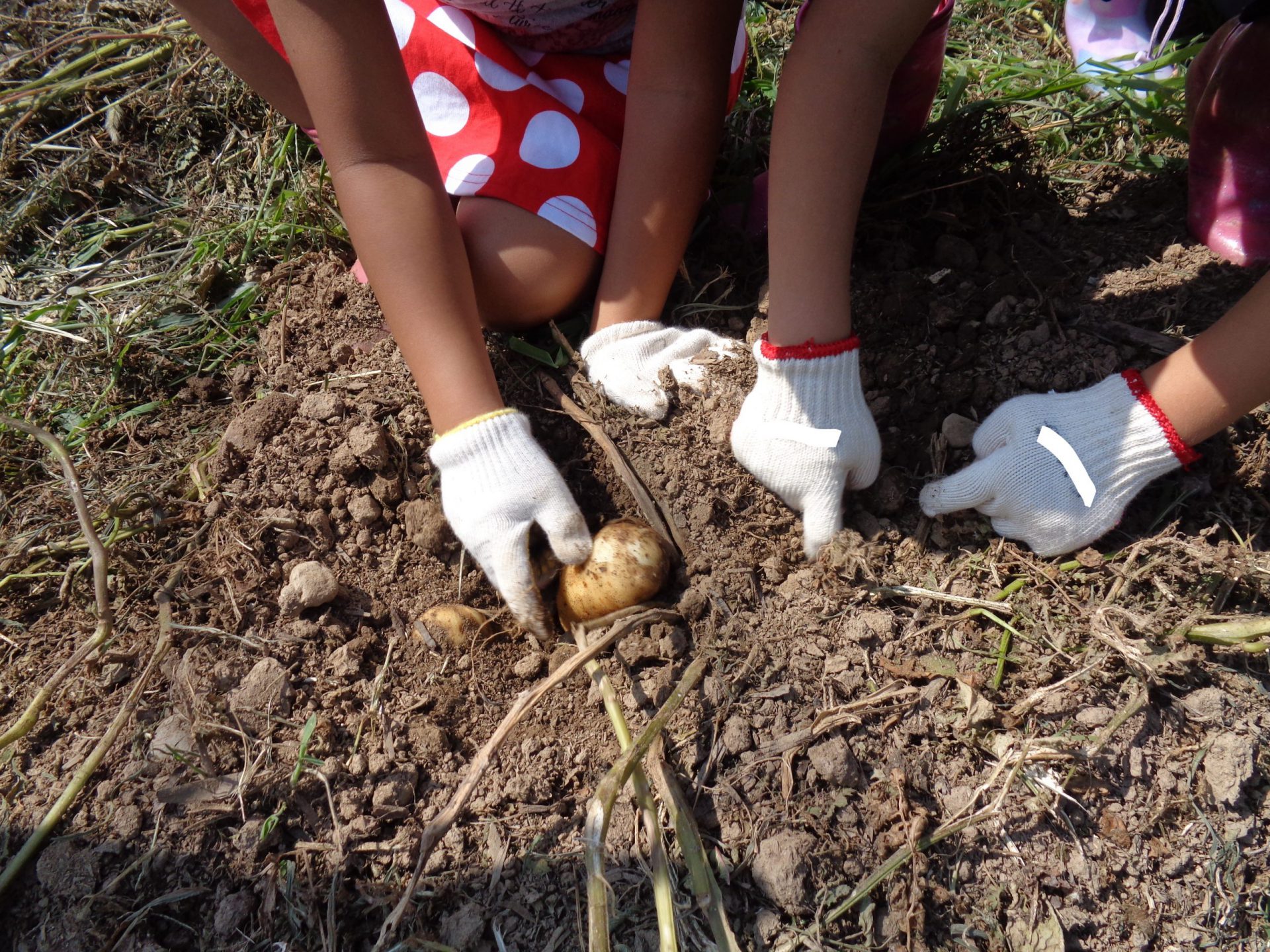 年長さんが畑にイモほりに行きました。