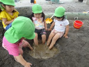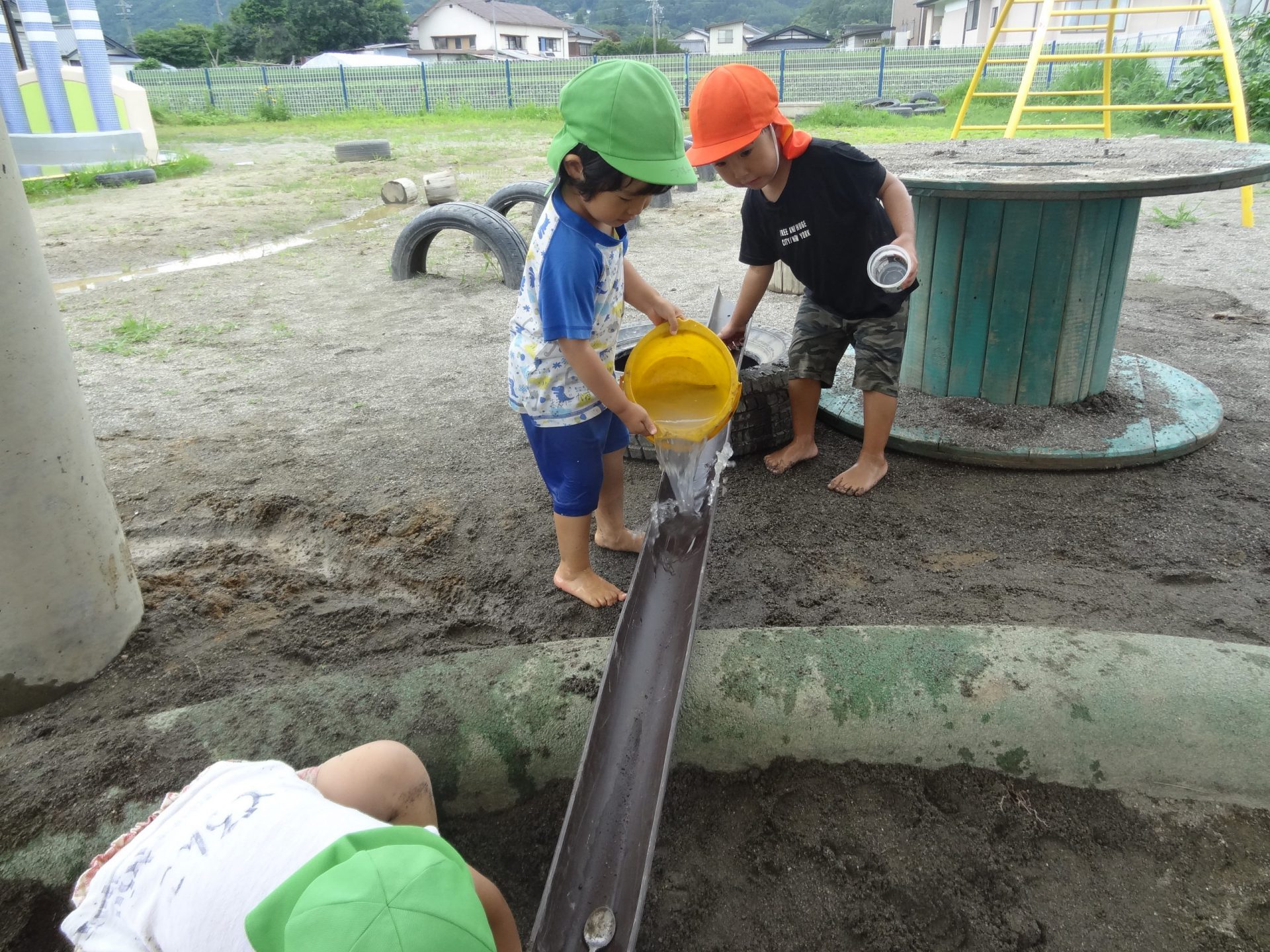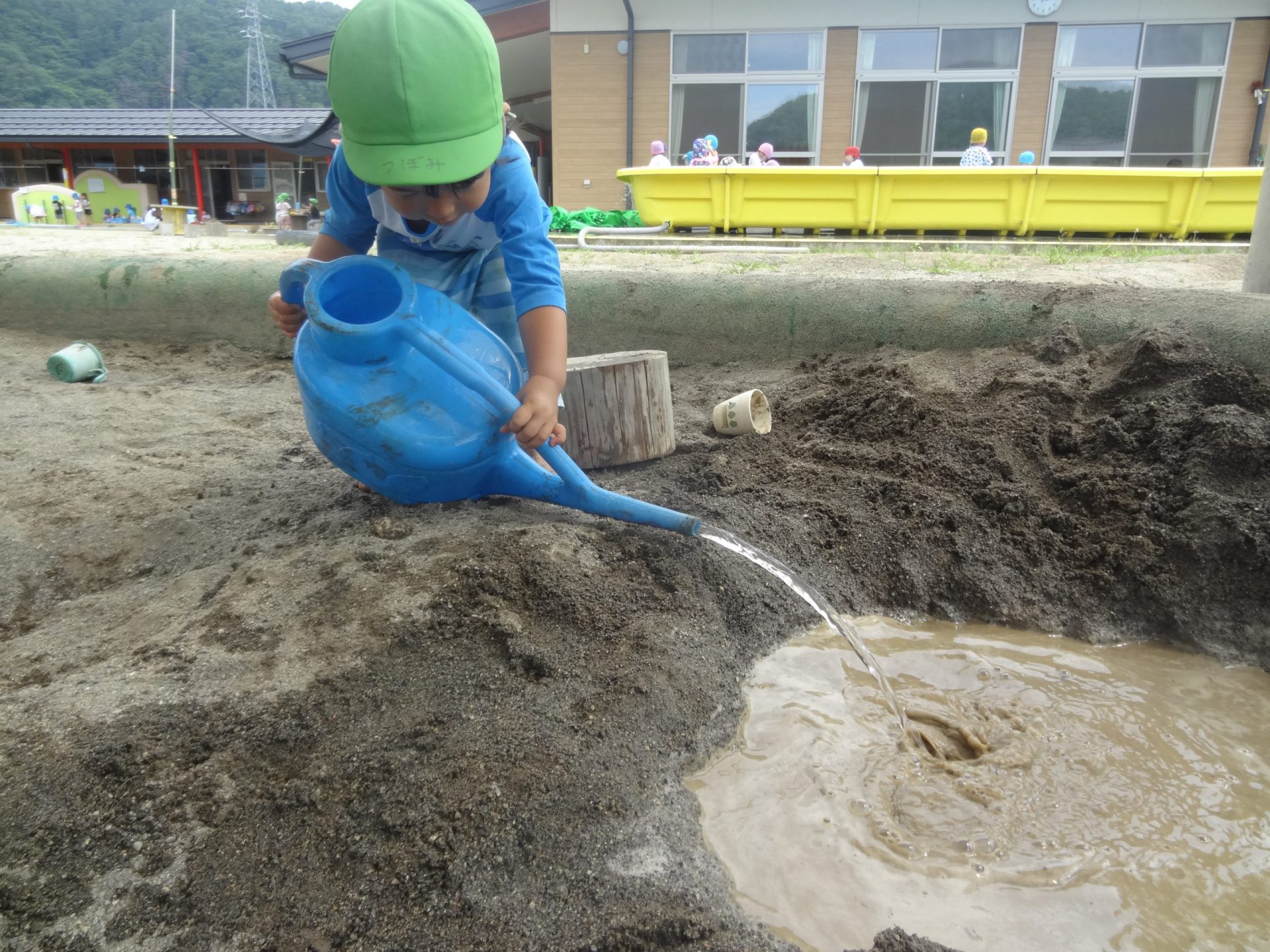 砂場や川づくり、水遊びが大好きなので元気いっぱい遊んできましたよ。