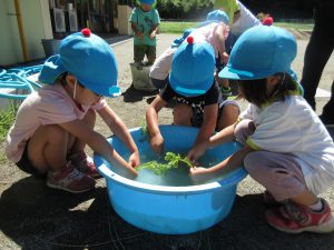 子ども達はメロンではなく、がっかりしましたが、気を取り直して、翌日そうめんの中に入りました。。「つるっとしておいしい」「味しないね」等々、いろいろな味を感じています。
