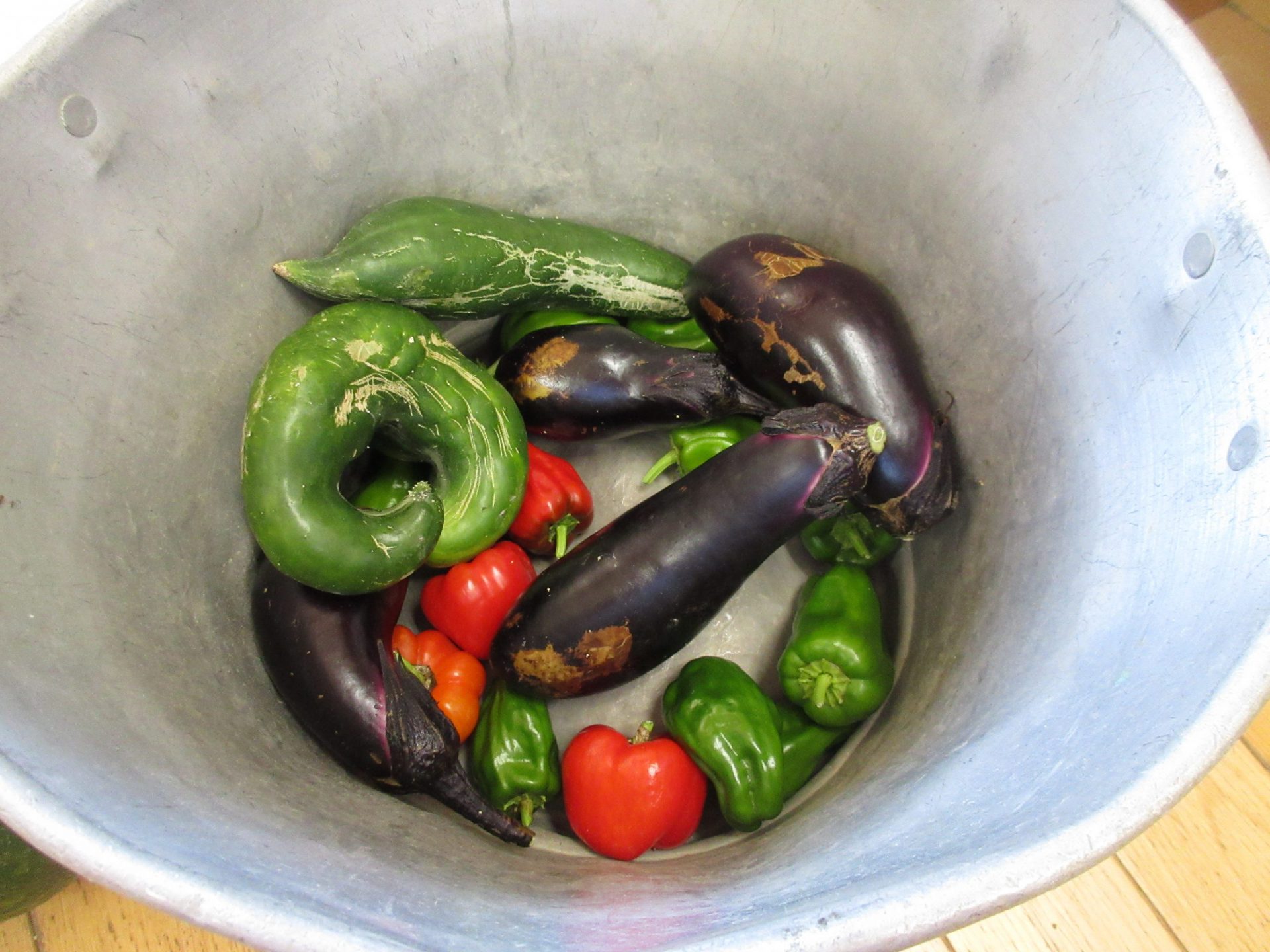 保育園の畑で採れた野菜 なす、ピーマン、パプリカ、