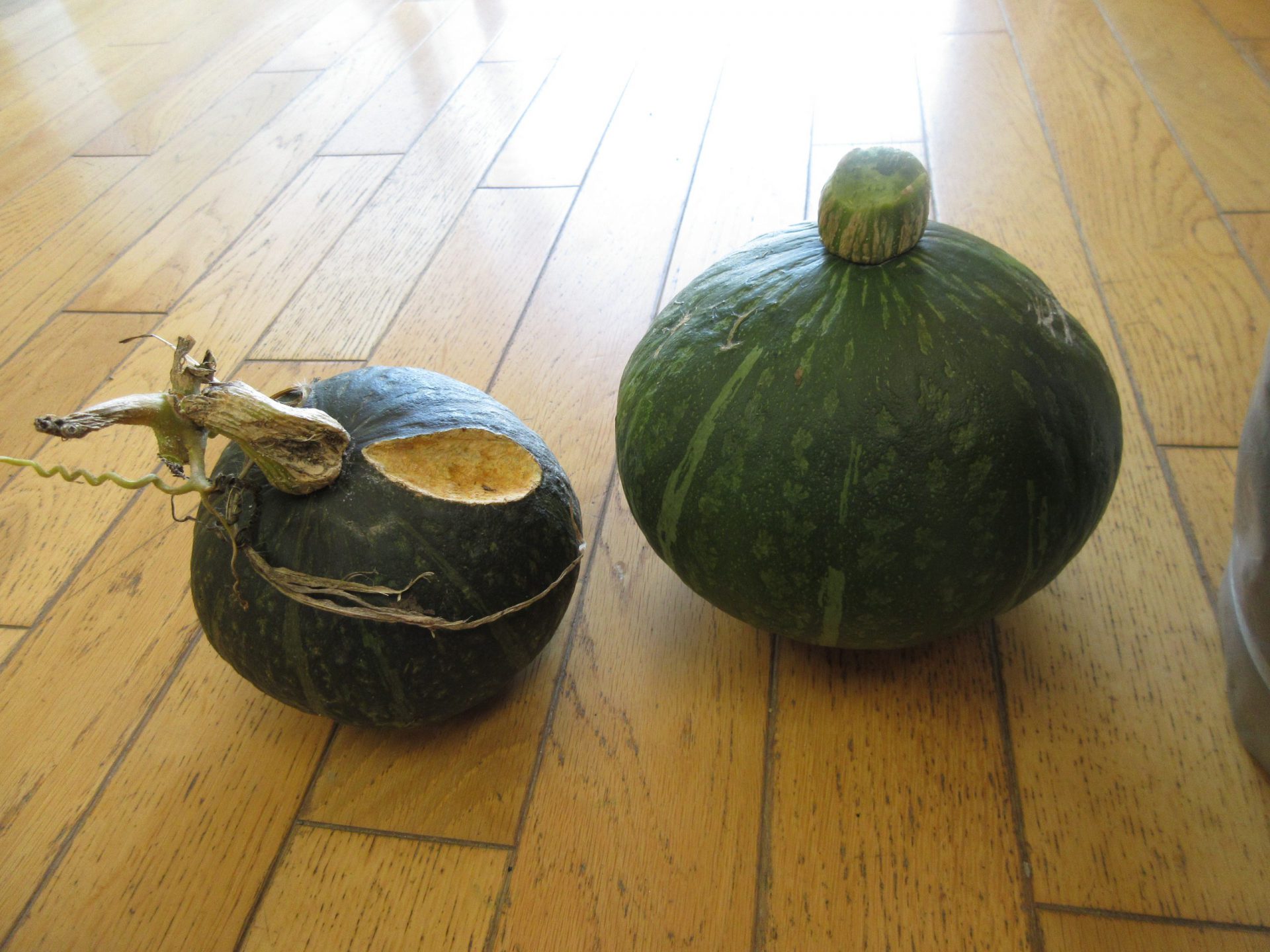 カボチャも傷はあるけど、よく実りました。 今日は畑の野菜を使ってピザのトッピングを楽しみます