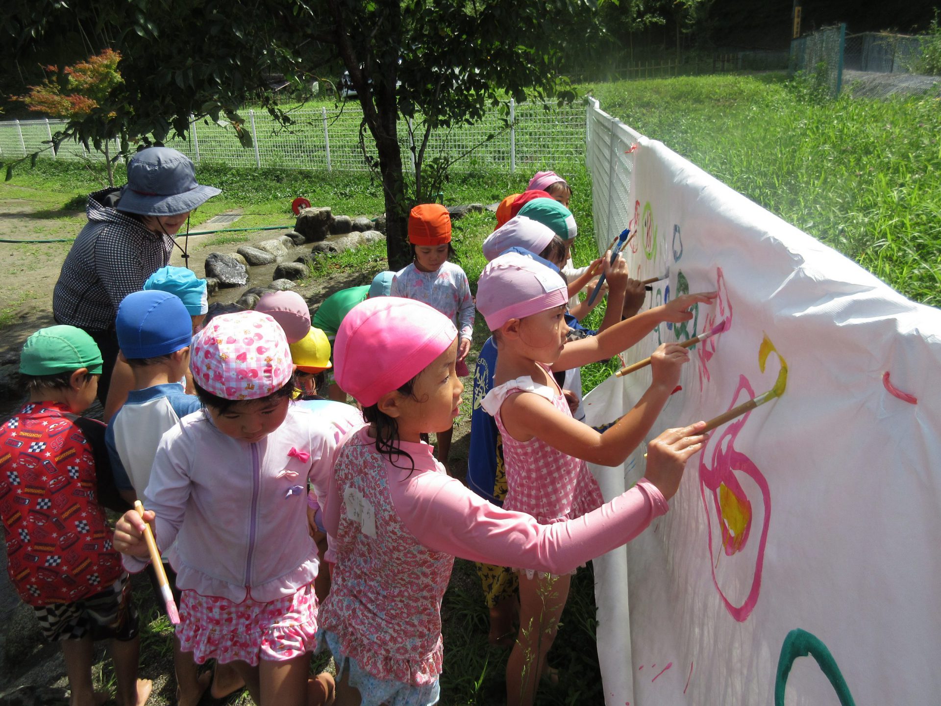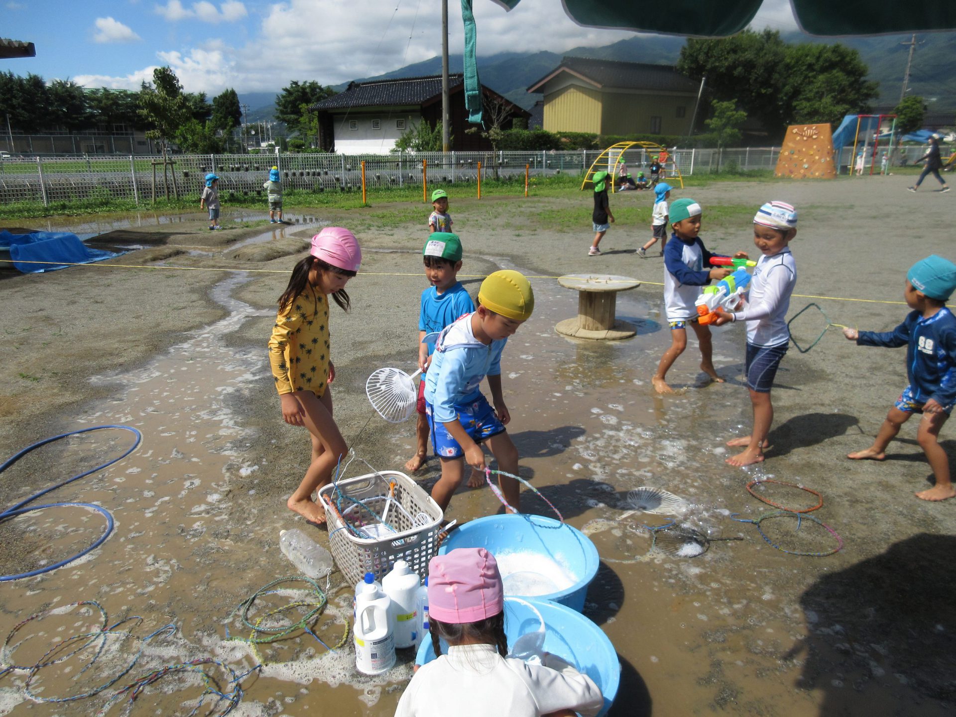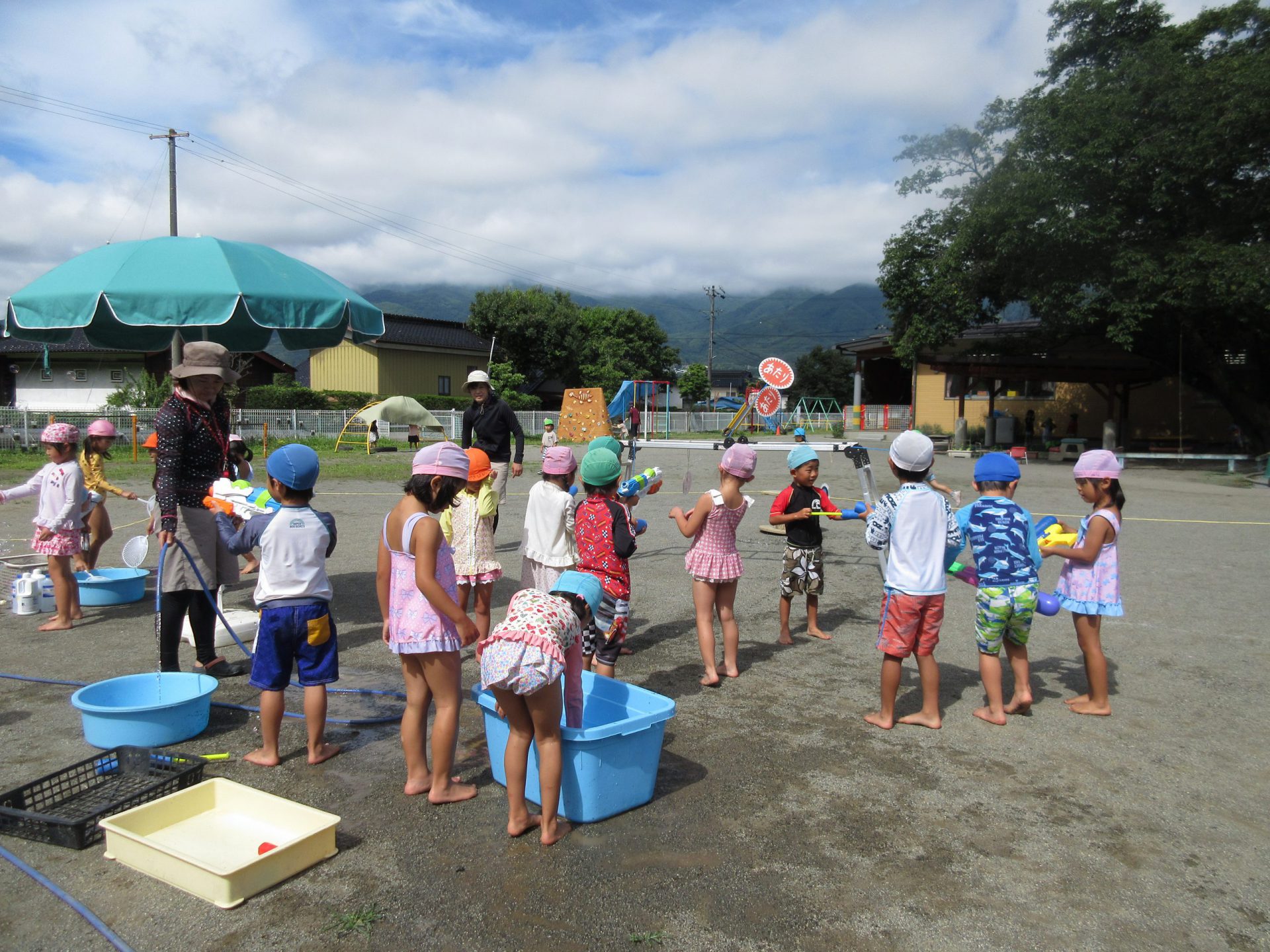 水鉄砲だ!!的当て もたのしいんだけど、やっぱり、先生やお友だちにあてちゃおっと!