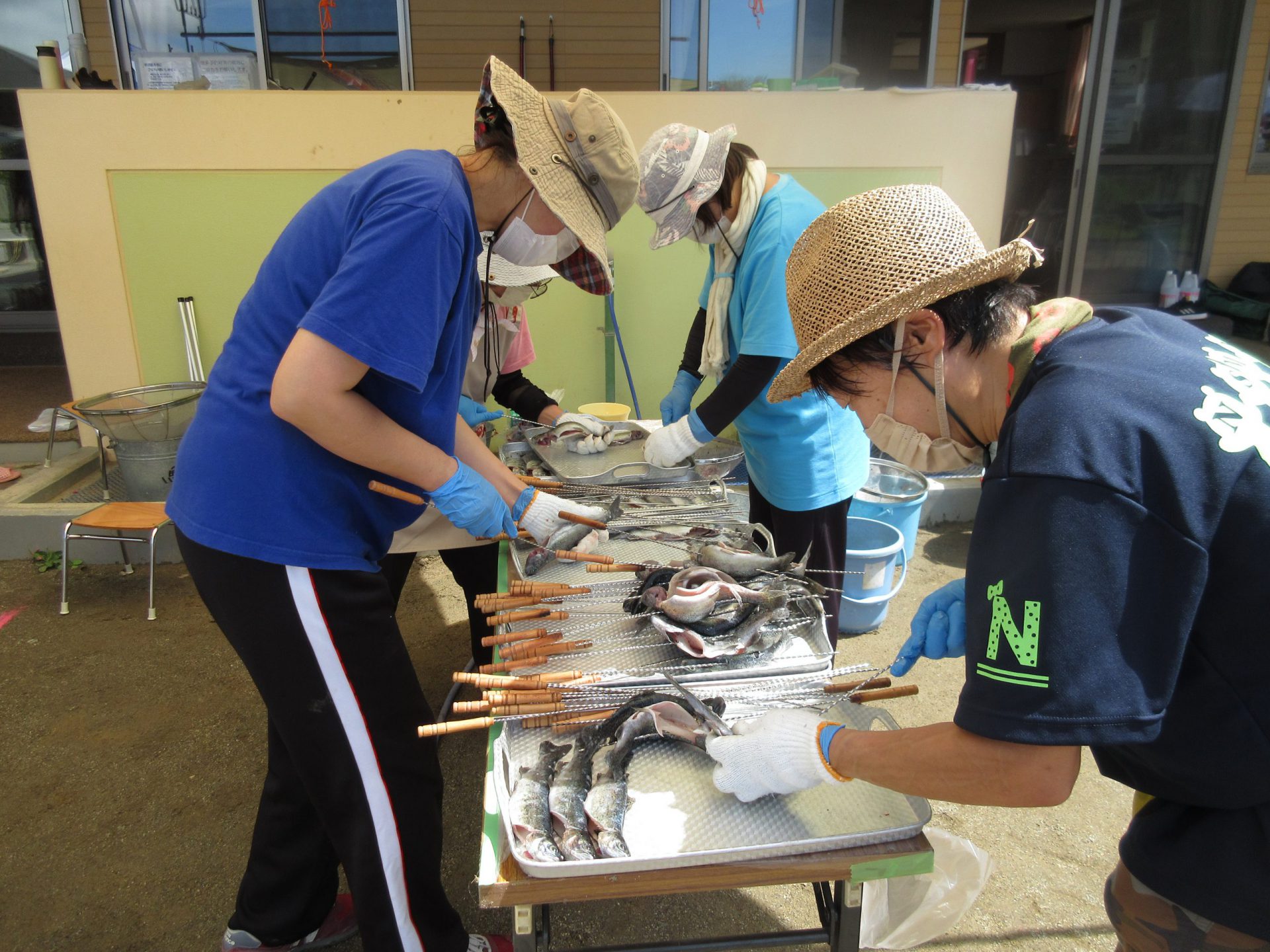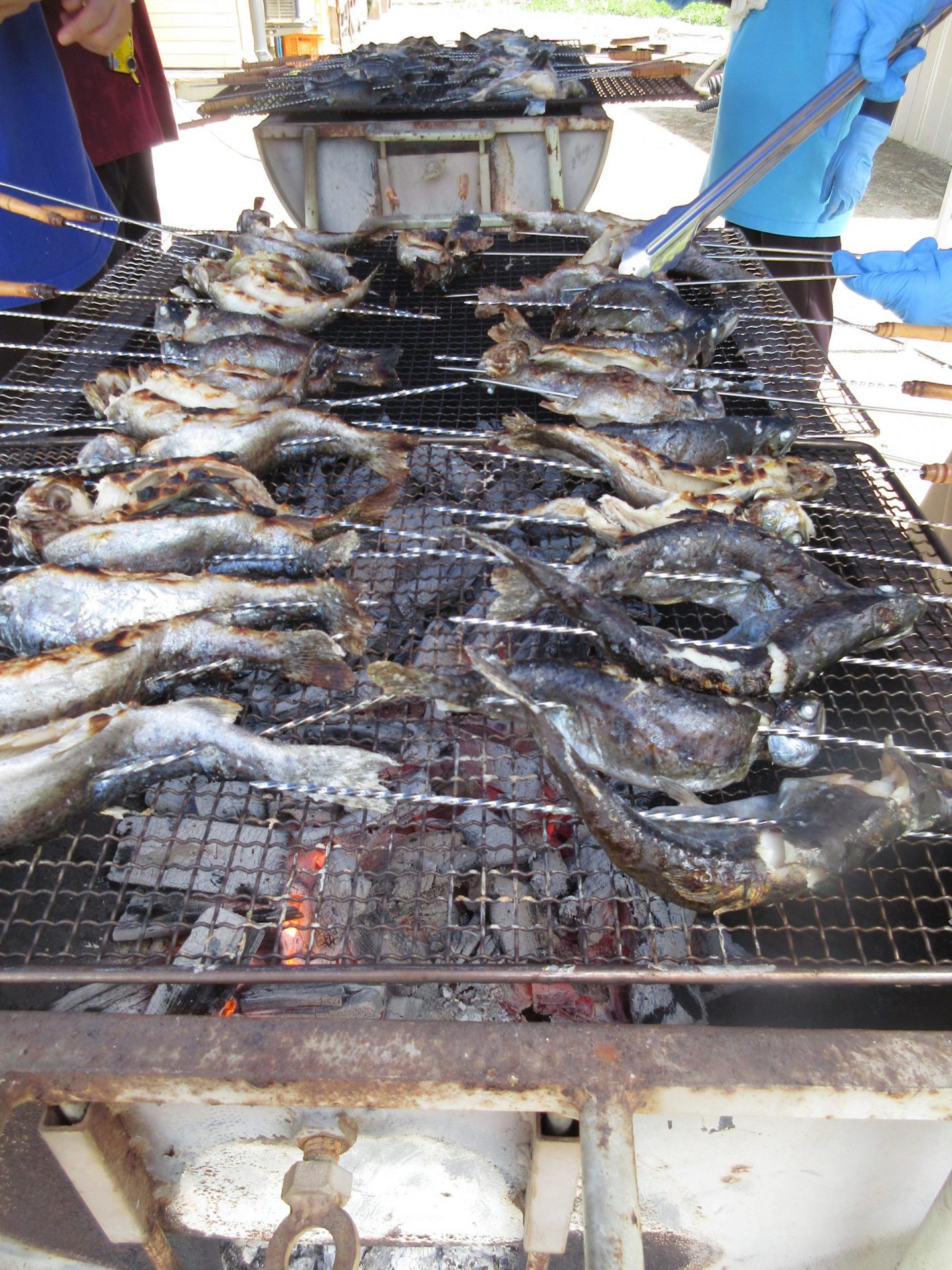するといい匂いが…「魚が焼けたよ!!」「待ってました!!」
