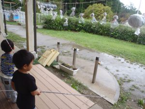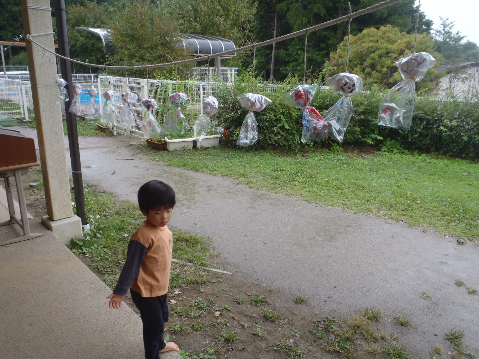 運動会を楽しみにしていた年少さん、「あめ、やめ~」と必死に祈祷しています(笑)