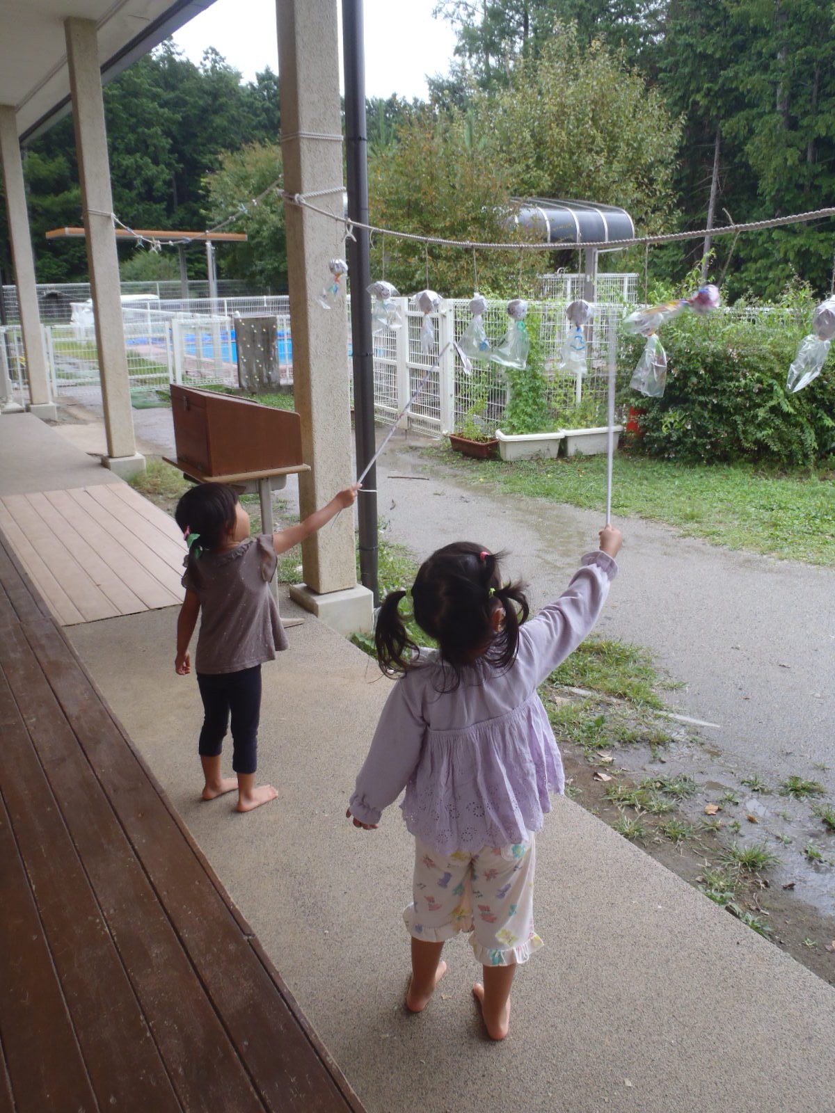 おやおや、てるてる坊主を突っつき始めました(笑)ユラユラ揺れてキレイだね!