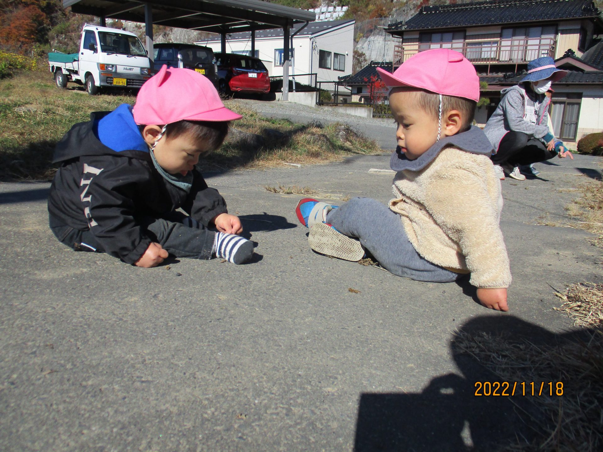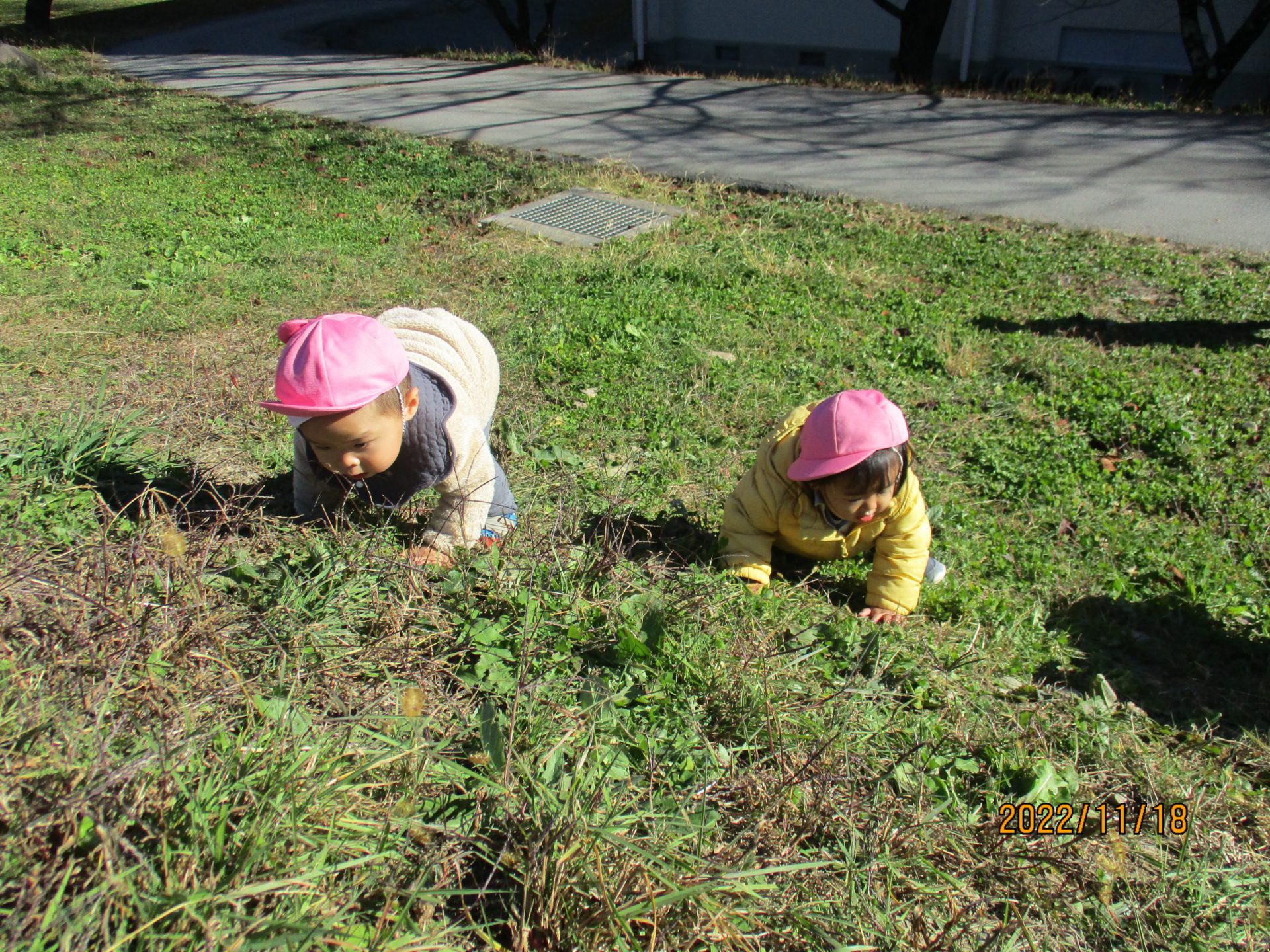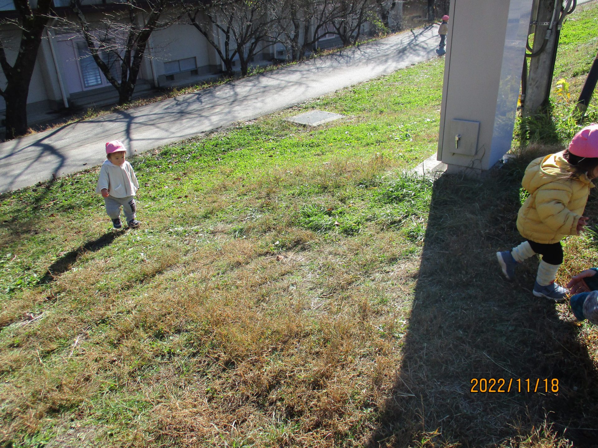 下りは「こあーい…」(怖い)と保育士と手をつないで下っていたのですが