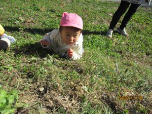 緩やかな傾斜ですが歩き始めた0歳児さんには大冒険の場所なんです。