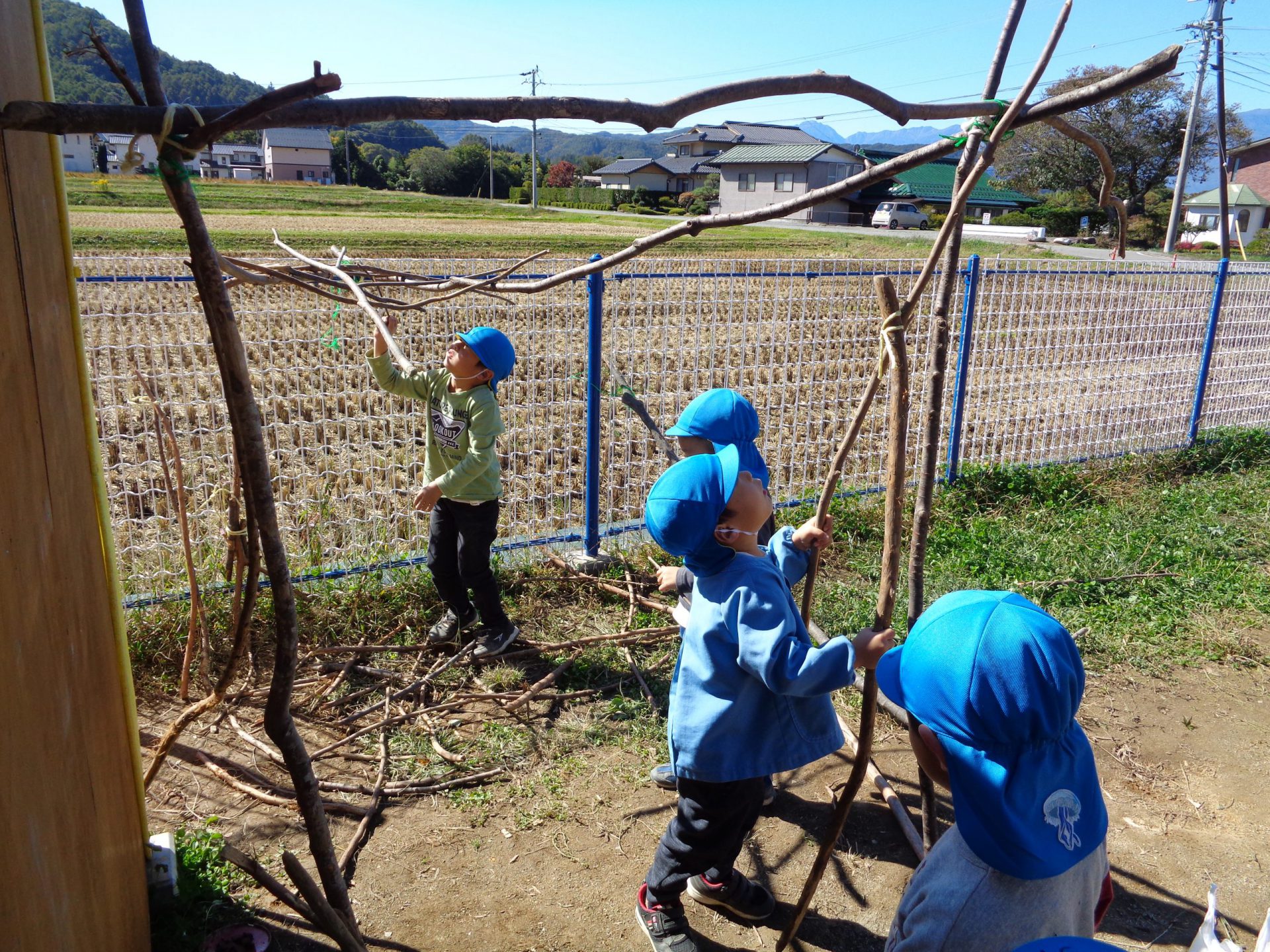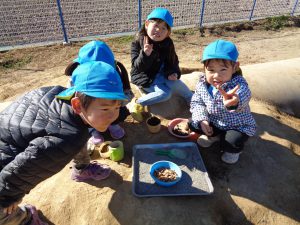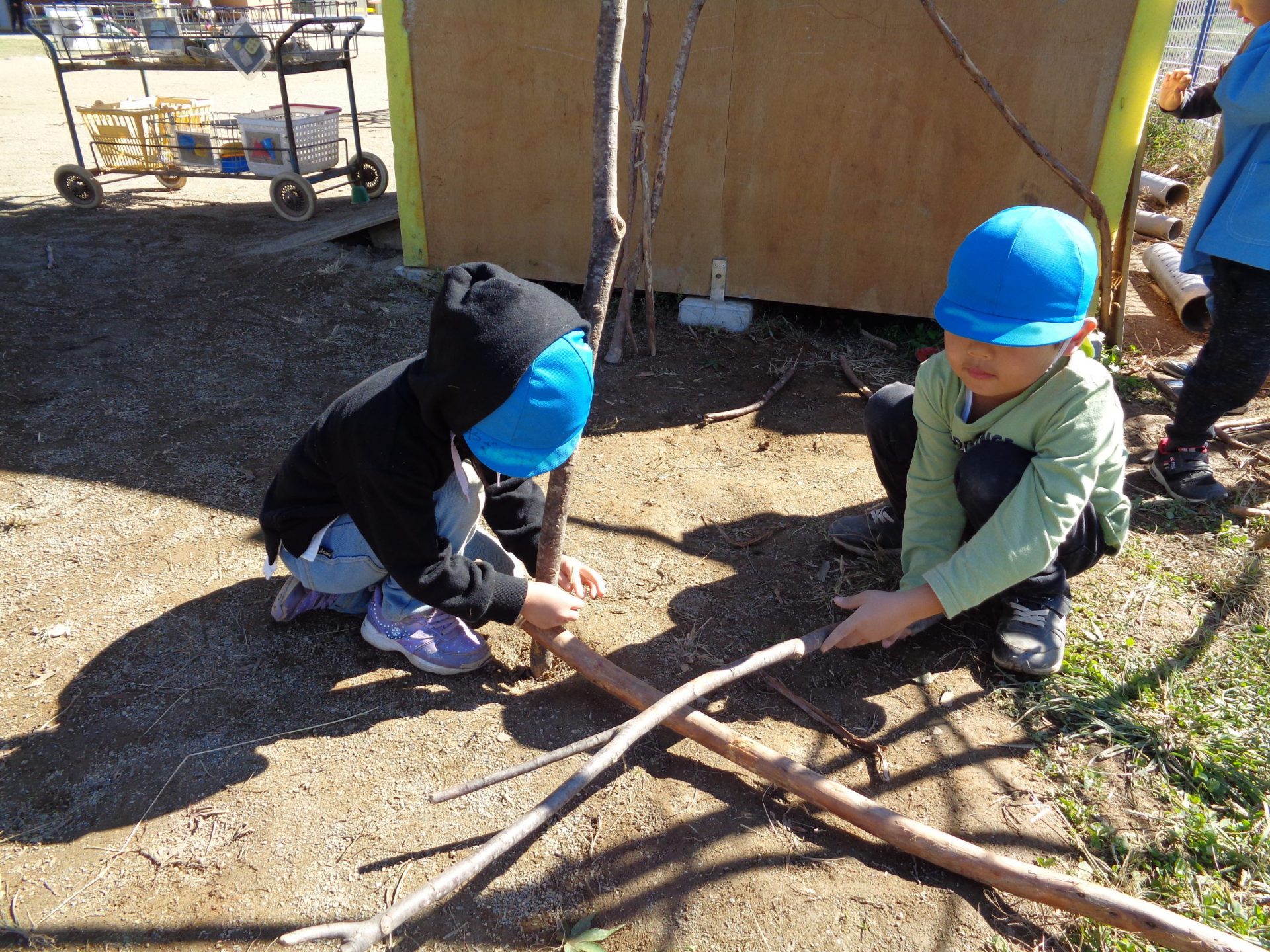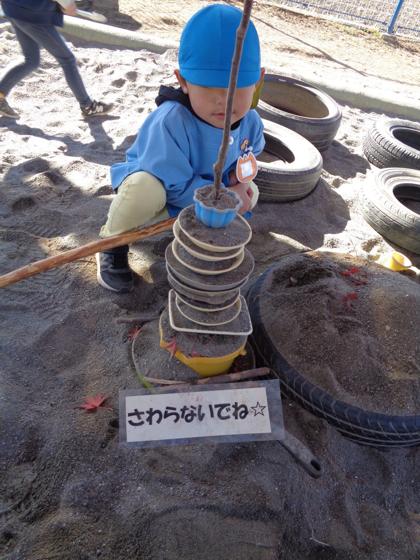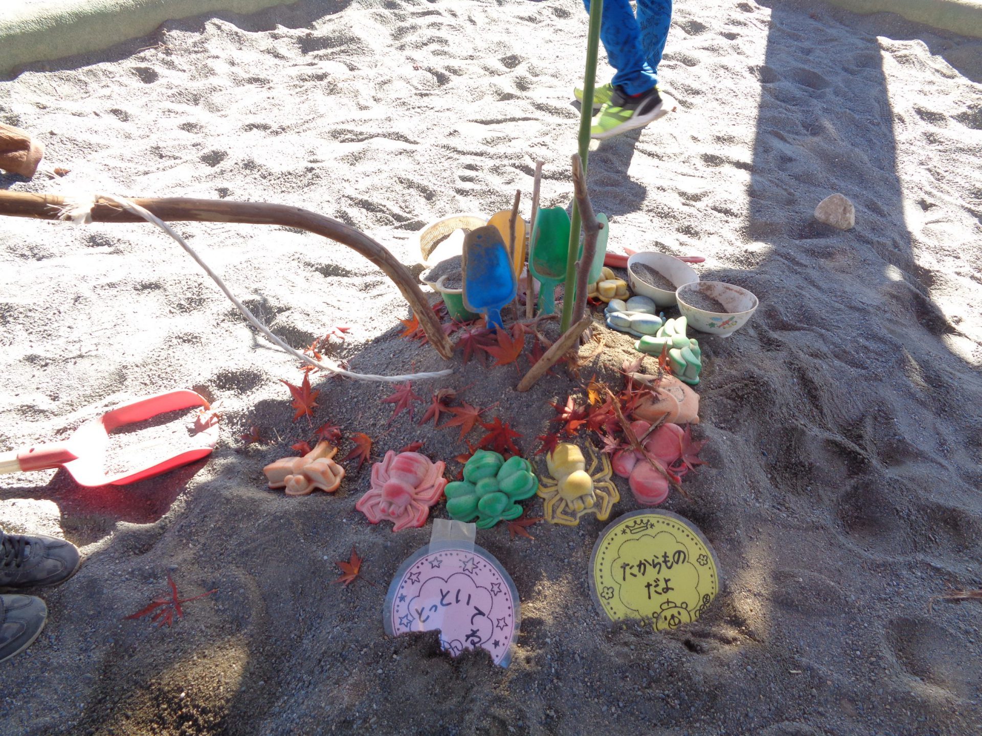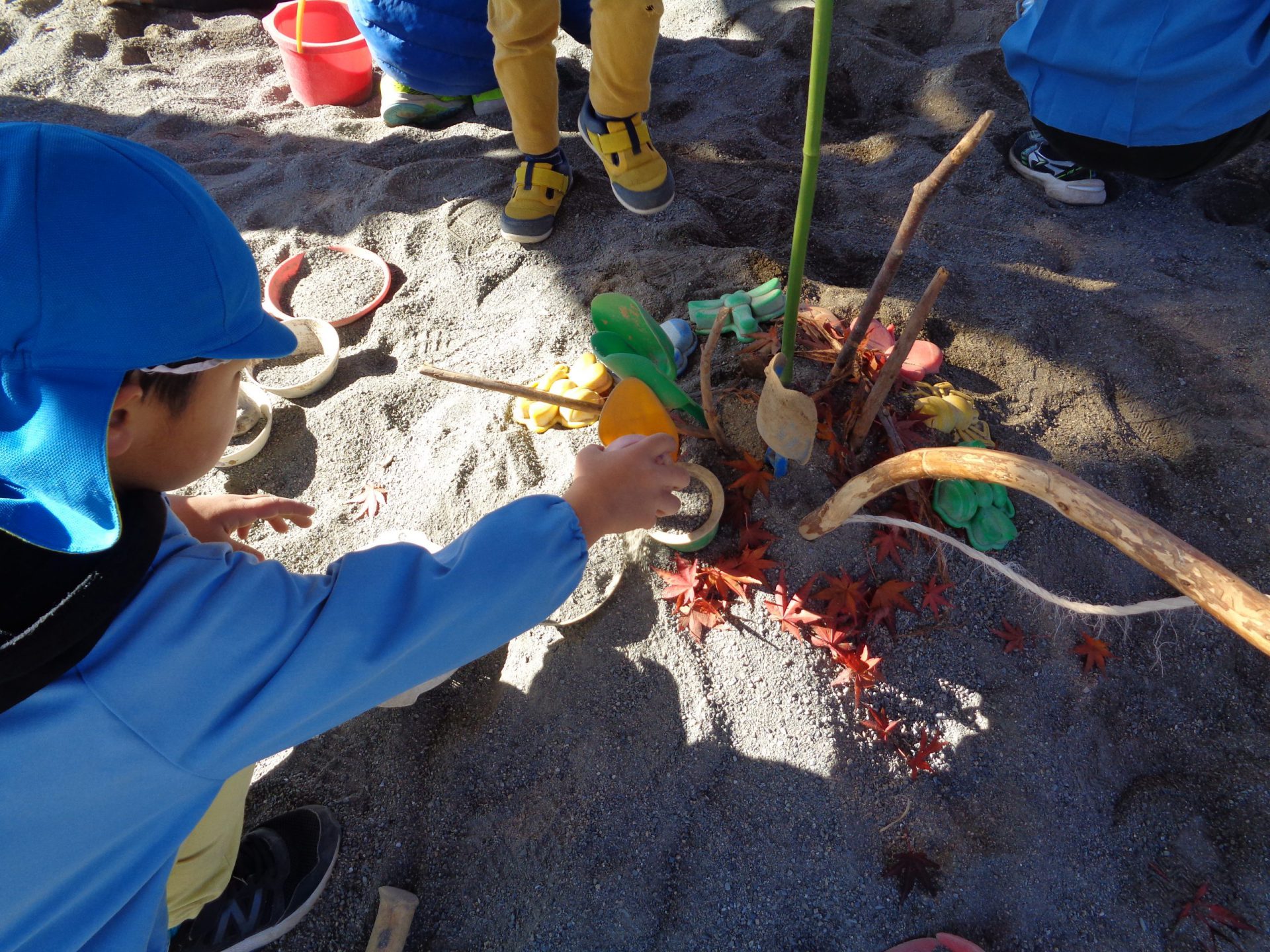ポカポカおひさまや 自然物をふんだんに使って秋の遊びを楽しんでいる子ども達です。