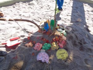 シャベルや型抜きも使ってカラフルに飾り付け。