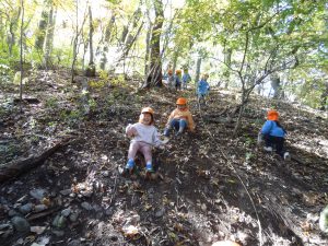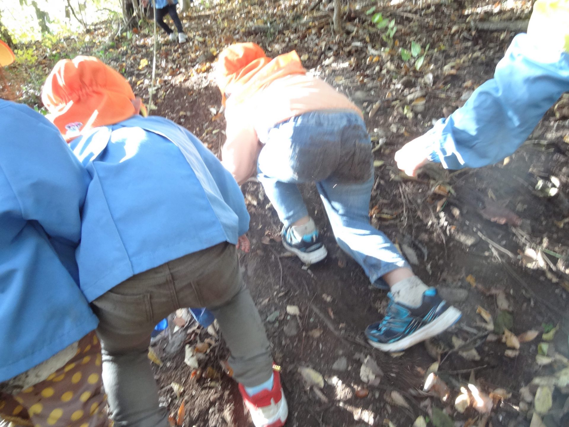 登り切った場所には、どんぐりがいっぱい!一生懸命拾っています。