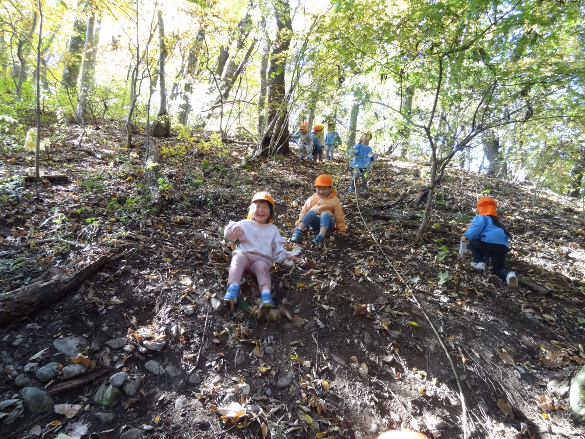 他にも切り株に登ったり、木を揺らして落ち葉シャワーを楽しんだりしました🍂