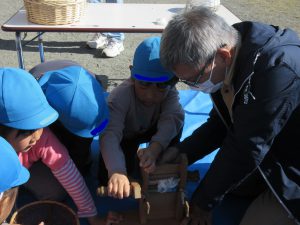 年長さんは昨年作った種も蒔いたので、いただいた種を見て…