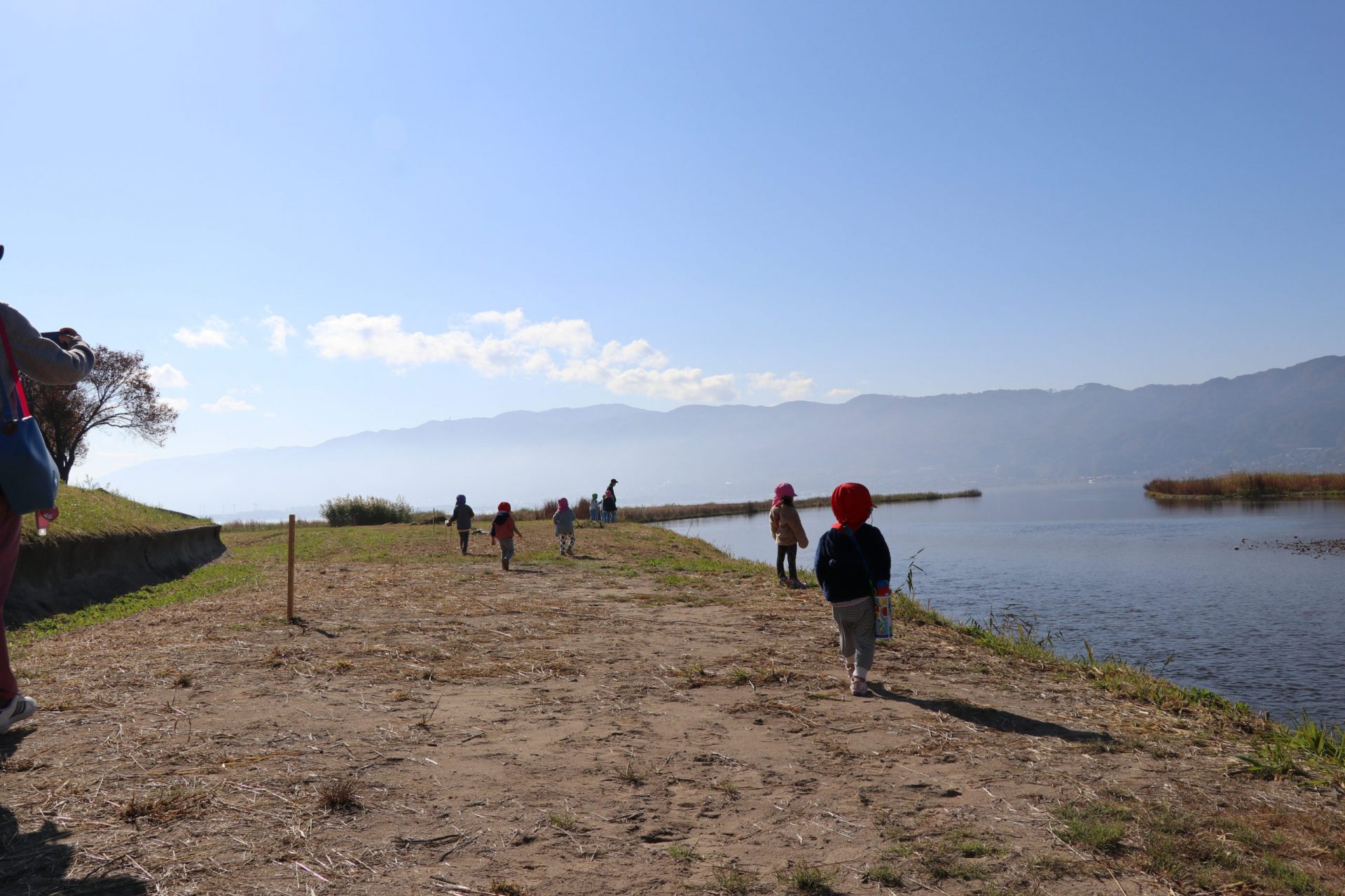 諏訪湖の周りをおさんぽしながら、どこまで歩けるかチャレンジをしました♪