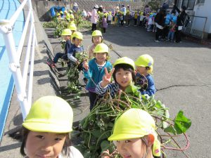 あれれっ・・・???ぶどう組さん、さつまいものツルどこに運んでいくの?