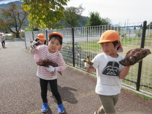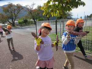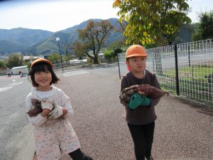 みんなで掘ったさつまいも、早く食べたーい!!焼きいも大会たのしみだね♡