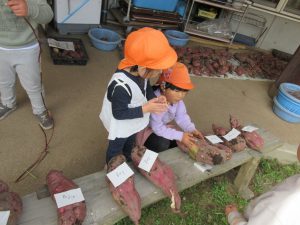 運んださつまいも、「どれが一番大きいのかな?」比べっこが始まりました。