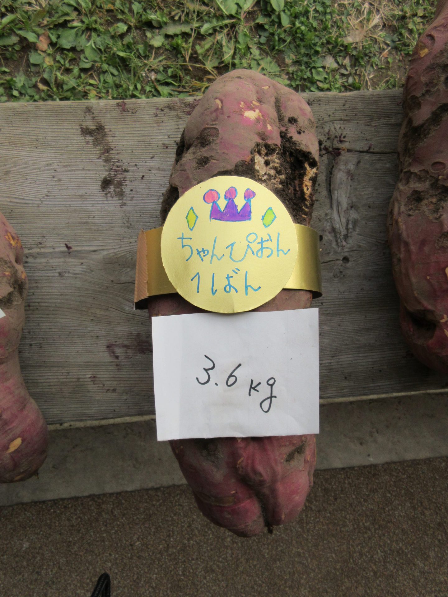 3.6キロので№1!に輝いたさつまいもには、ピカピカのチャンピオンメダル☆をかけました。
