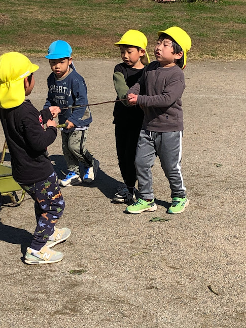 こちらは、綱引き。友だちと引っ張り合い!!子ども同士でのルールが生まれ、展開されていきます☆