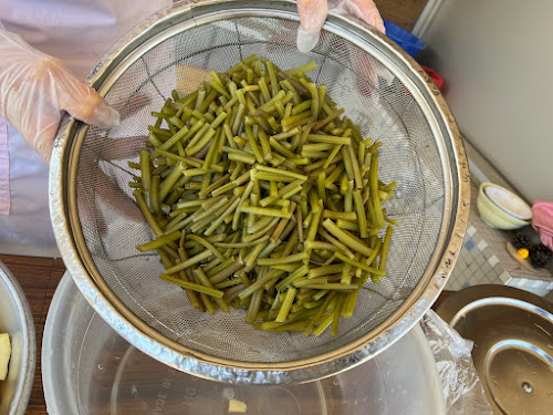 何やら、始まりましたよ。真剣に茎を採っていきます。