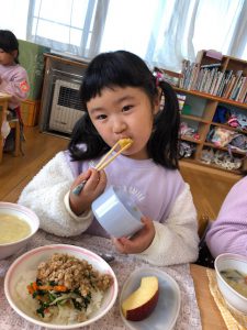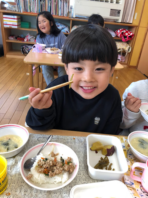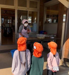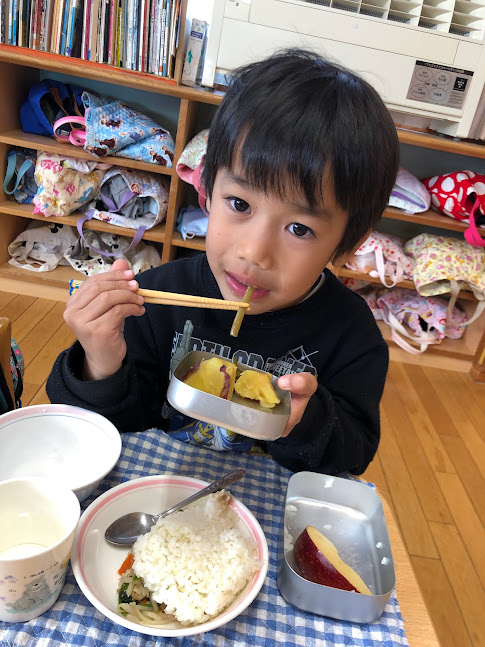 「おいしいさつまいもに、お願いします」お料理上な先生に託して、子ども達の遊びは続きます!