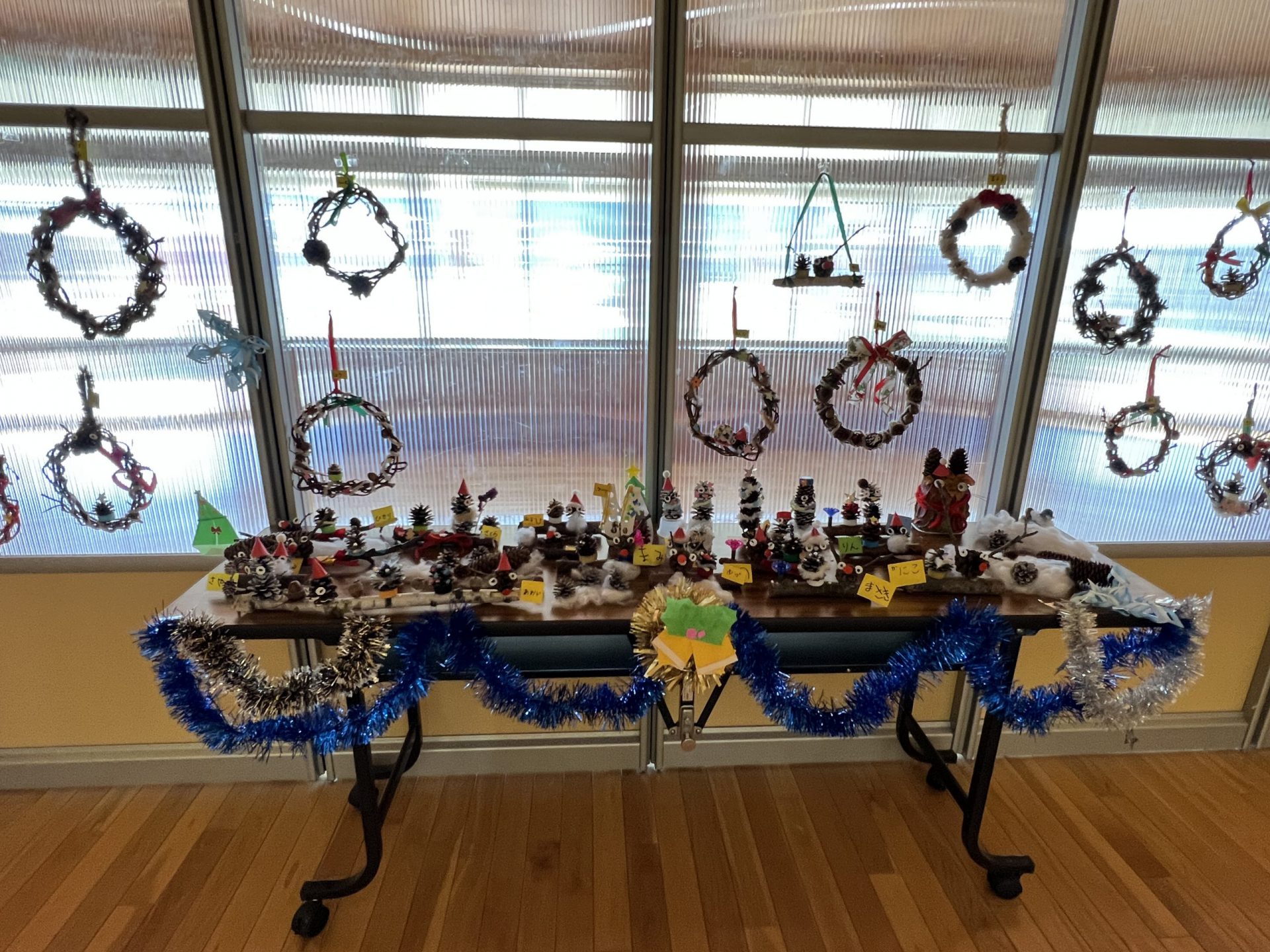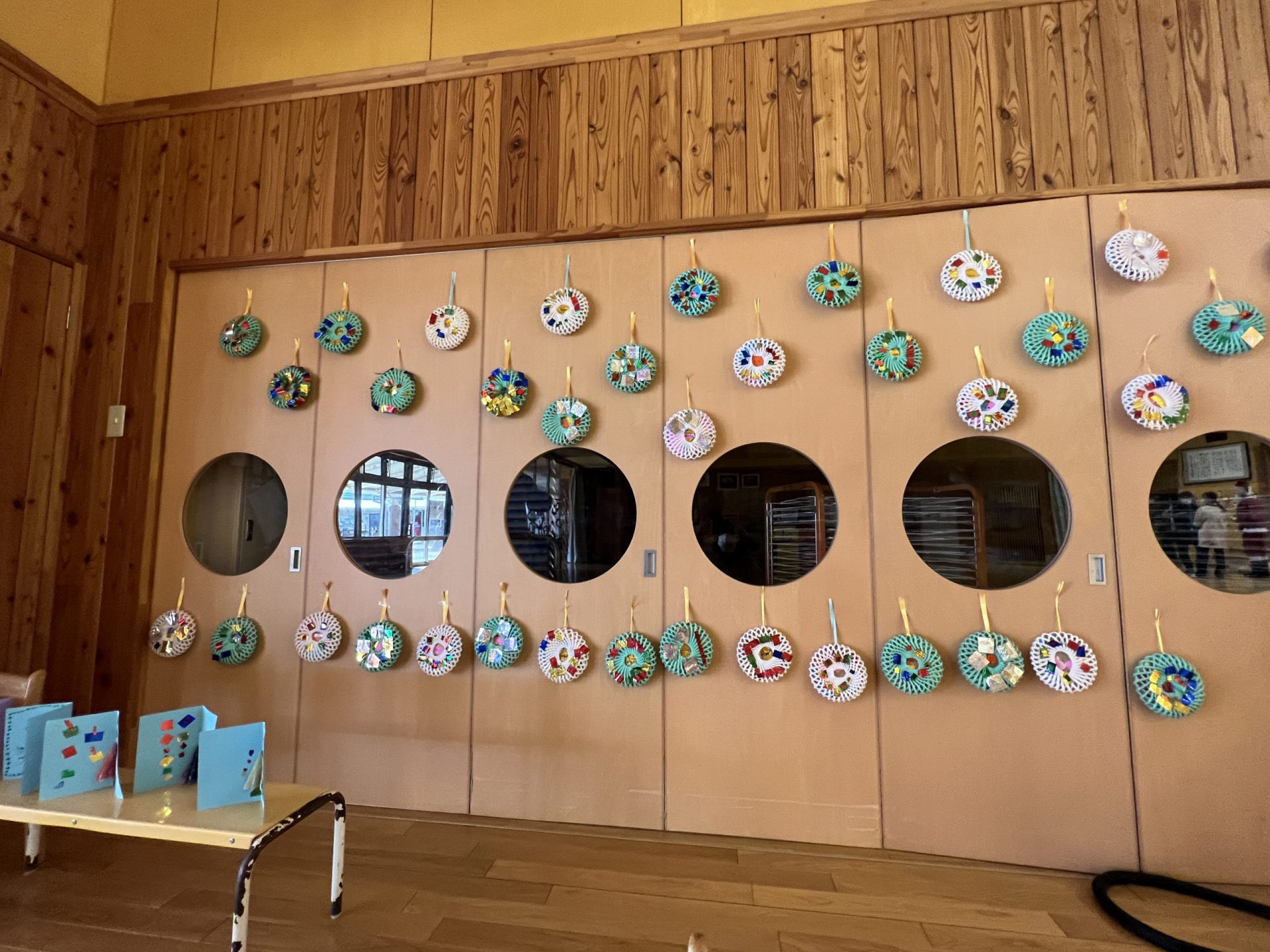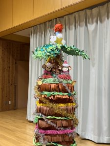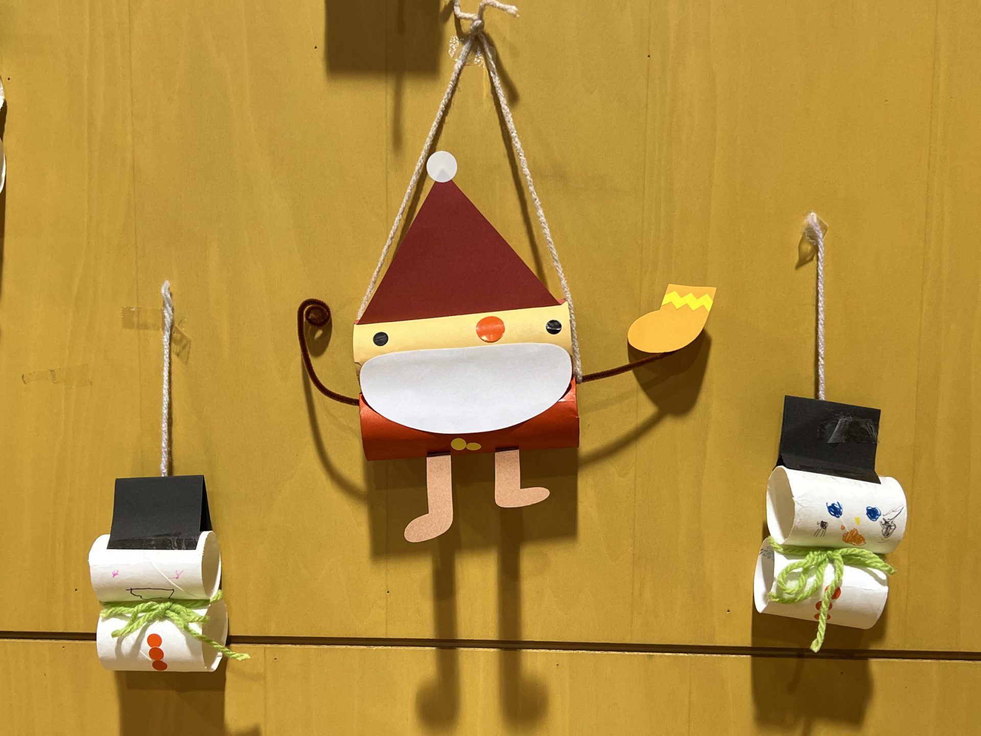 秋に子ども達と作った、さつまいものツルのリースが大変身!!自然物や廃材を使って、ステキなクリスマス☆の飾りになりました!!