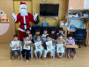 今日は楽しみにしていた、クリスマス会の日。「本当にサンタさん来てくれるかな?」子ども達のドキドキ♡が高まります。