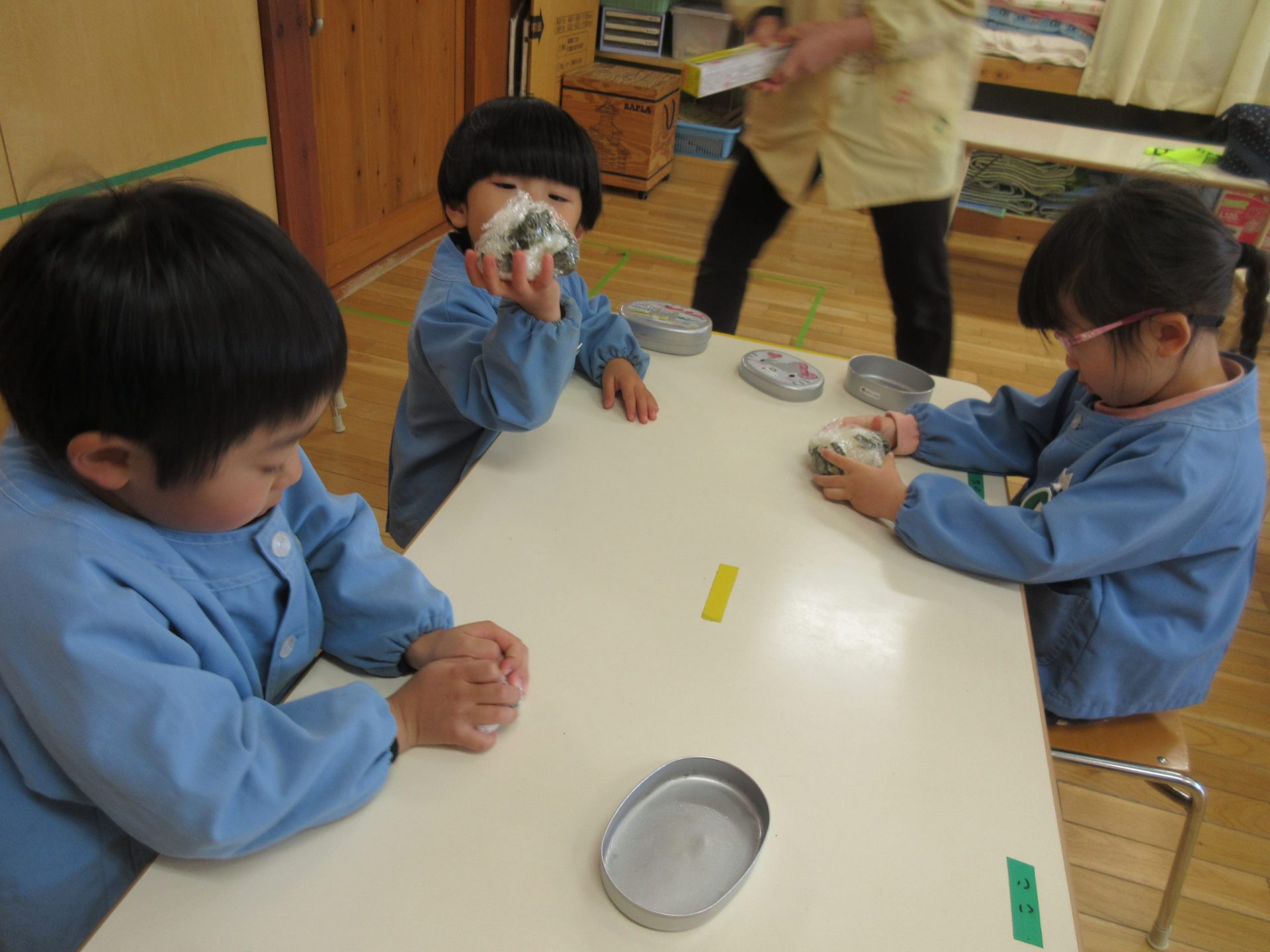 実は出発前に、自分でおにぎりを作って持ってきたのです😊 のりを沢山つけたんだ!