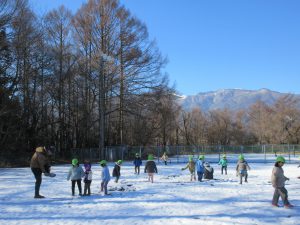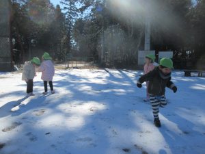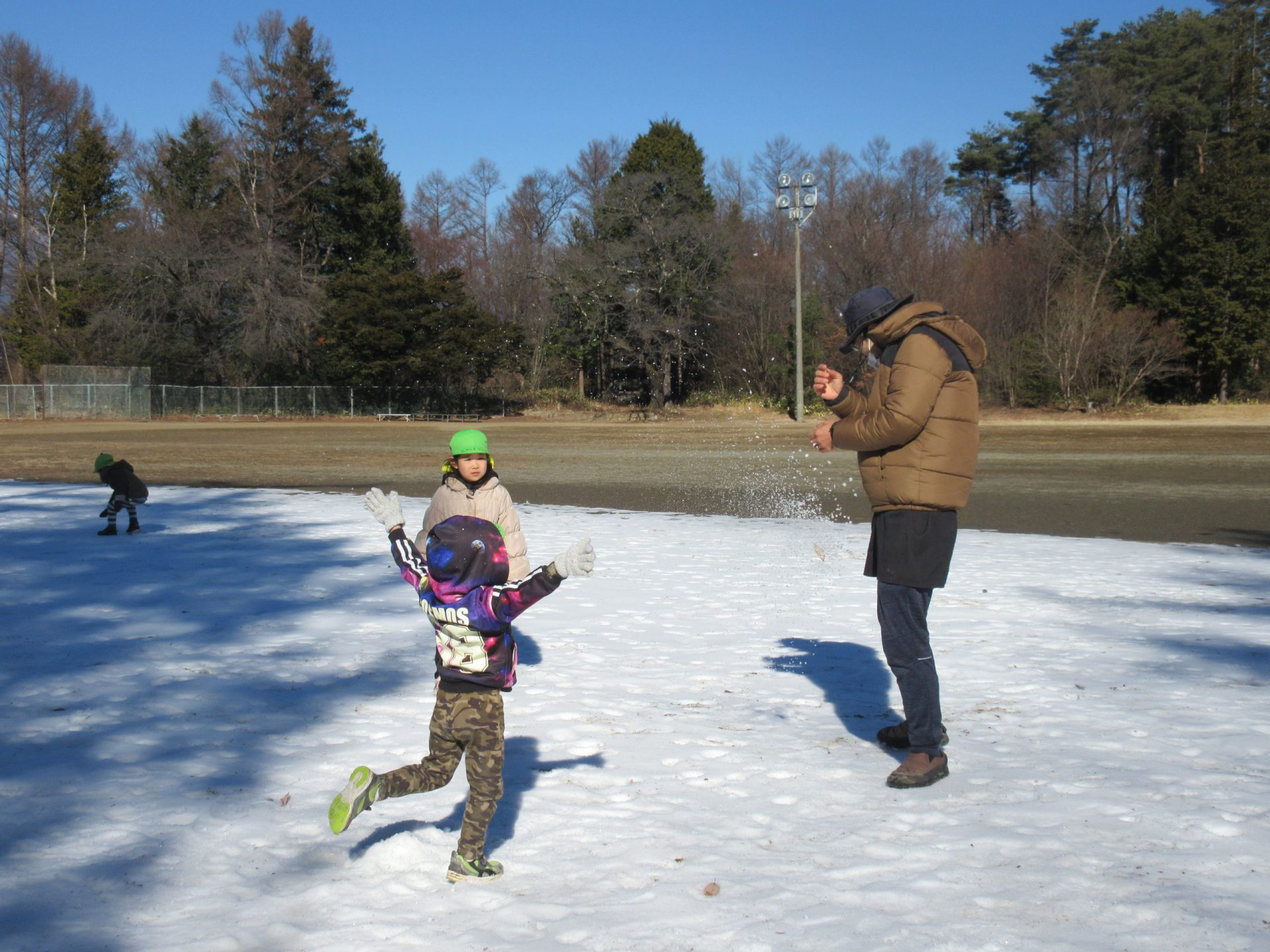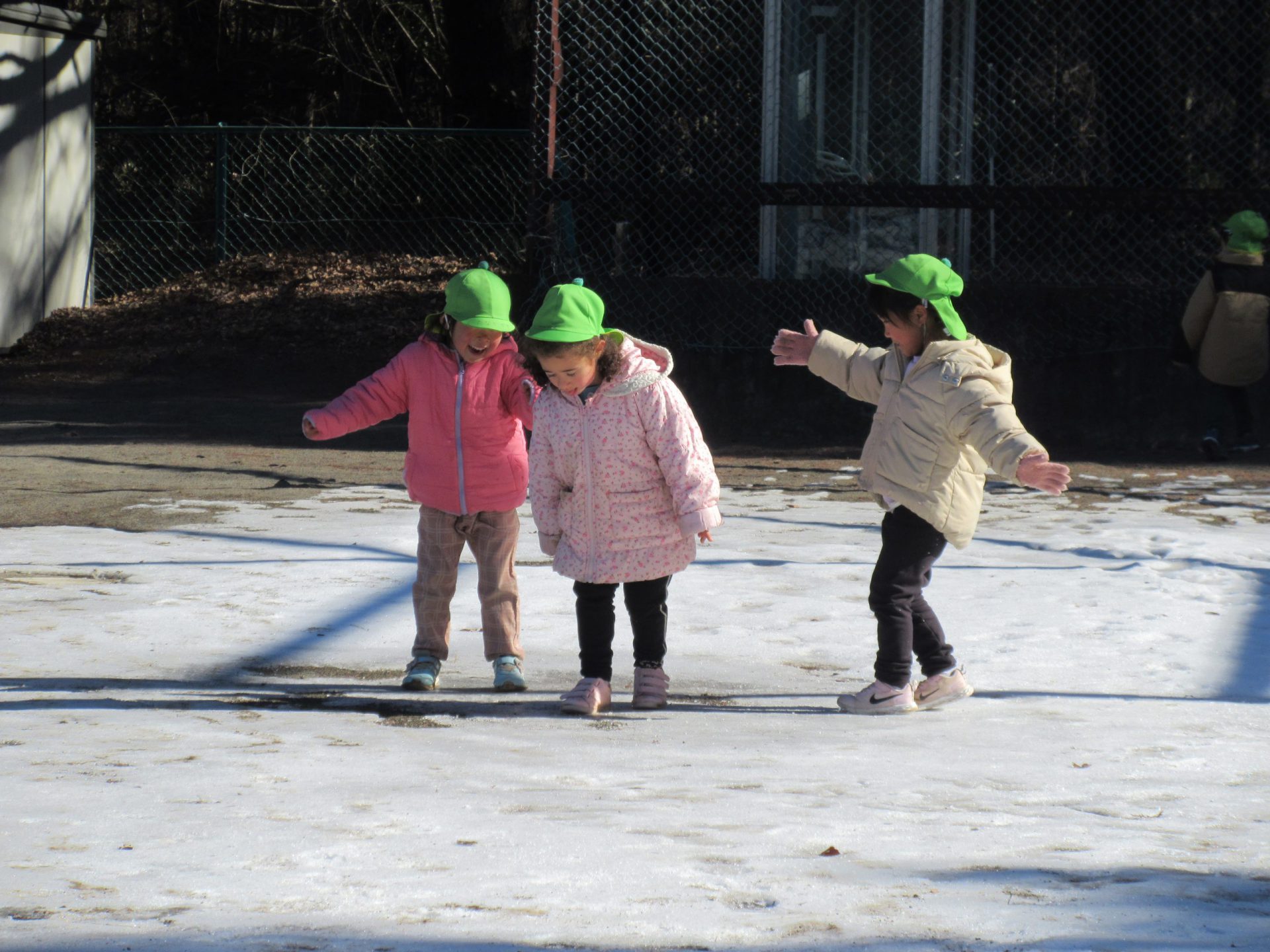 雪合戦だ! 氷のさらさらを先生にかけちゃうぞ~!!